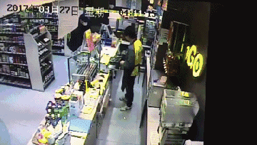 27日凌晨,两人戴着帽子,蒙着口罩,持刀先从凤起路延安路口一家便利店抢了1000多元,随后又流窜到附近一家便利店,抢走了600多元。