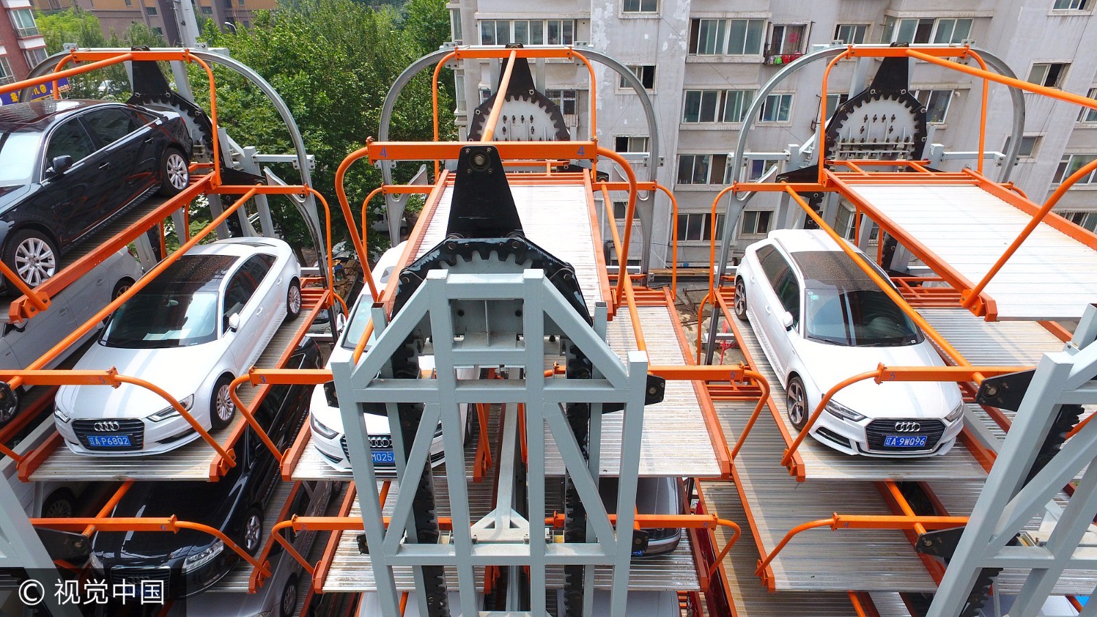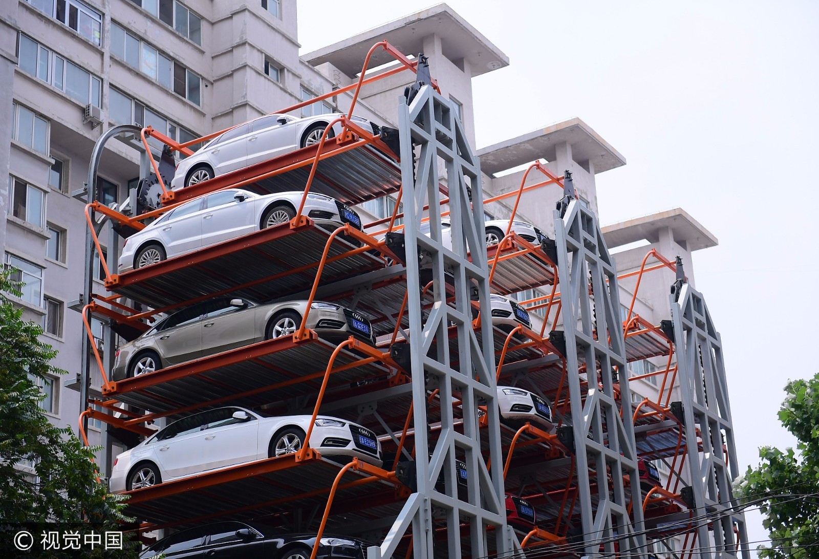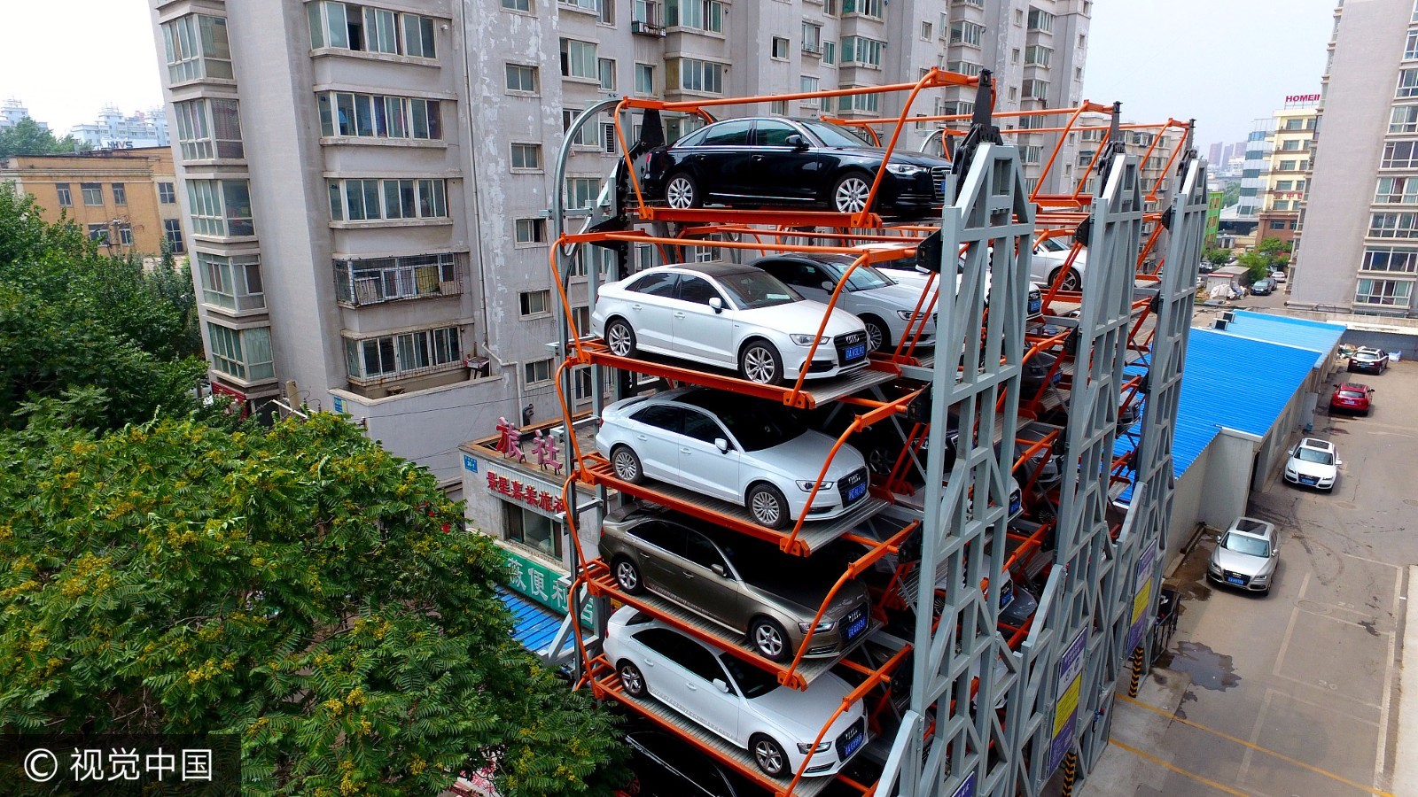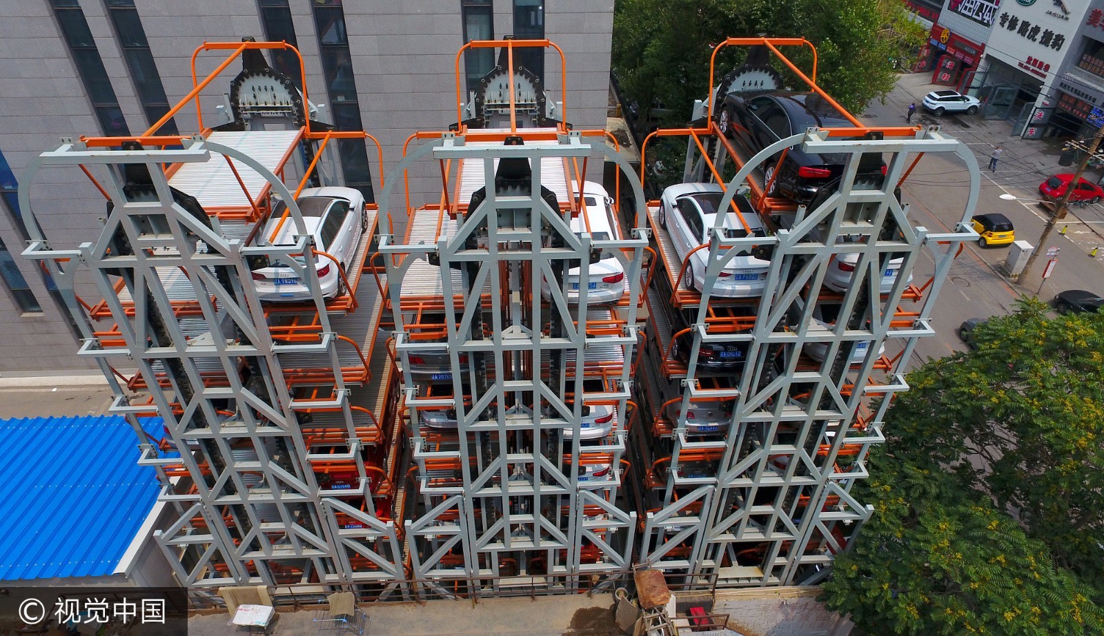 2017年6月19日,沈阳,10层楼高垂直式立体停车场亮相沈阳街头,吸引了不少市民的目光。