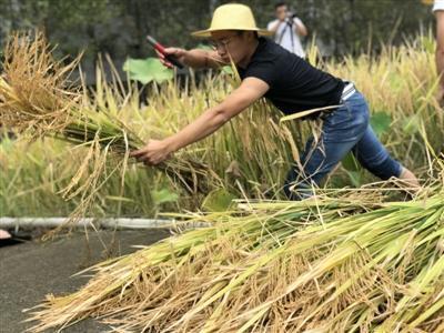 镰刀、草帽、雨靴、防水服……9月11日,在四川大学锦城学院(以下简称“川大锦城”)的农场里,正值中午,几十名同学却在农田里麻利地干起了农活,割水稻、打谷子、锄地……大伙分工明确,忙得热火朝天。