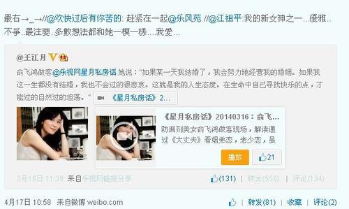 江祖平貌似是双,粉丝们亲切的叫她祖平哥,祖平哥目前的新女神是大美女俞飞鸿!