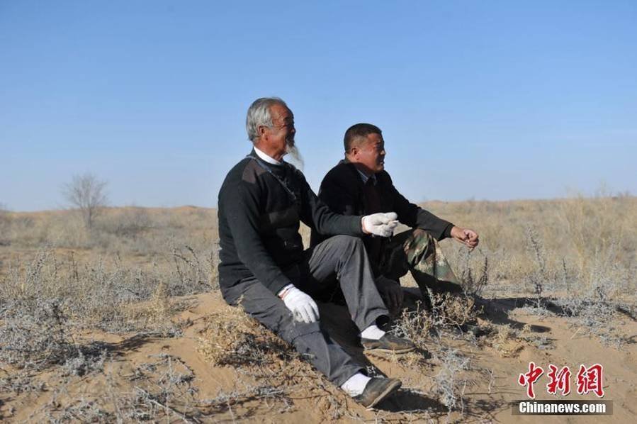 在基本生存条件都难以保障的中国腾格里沙漠腹地,76岁的王天昌和他48岁的儿子王银吉携家带口通过人力造成7500亩 沙漠"绿洲"。