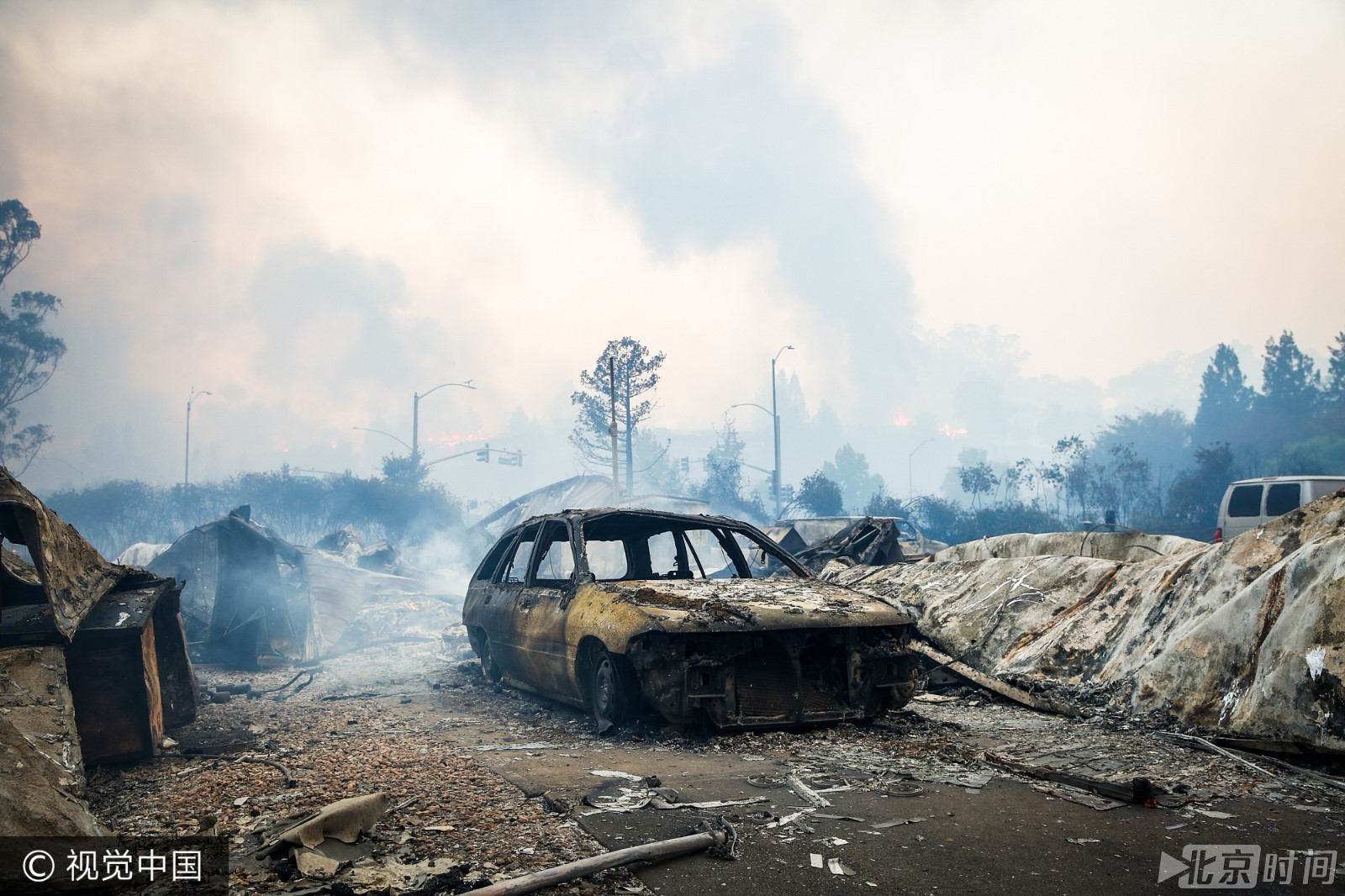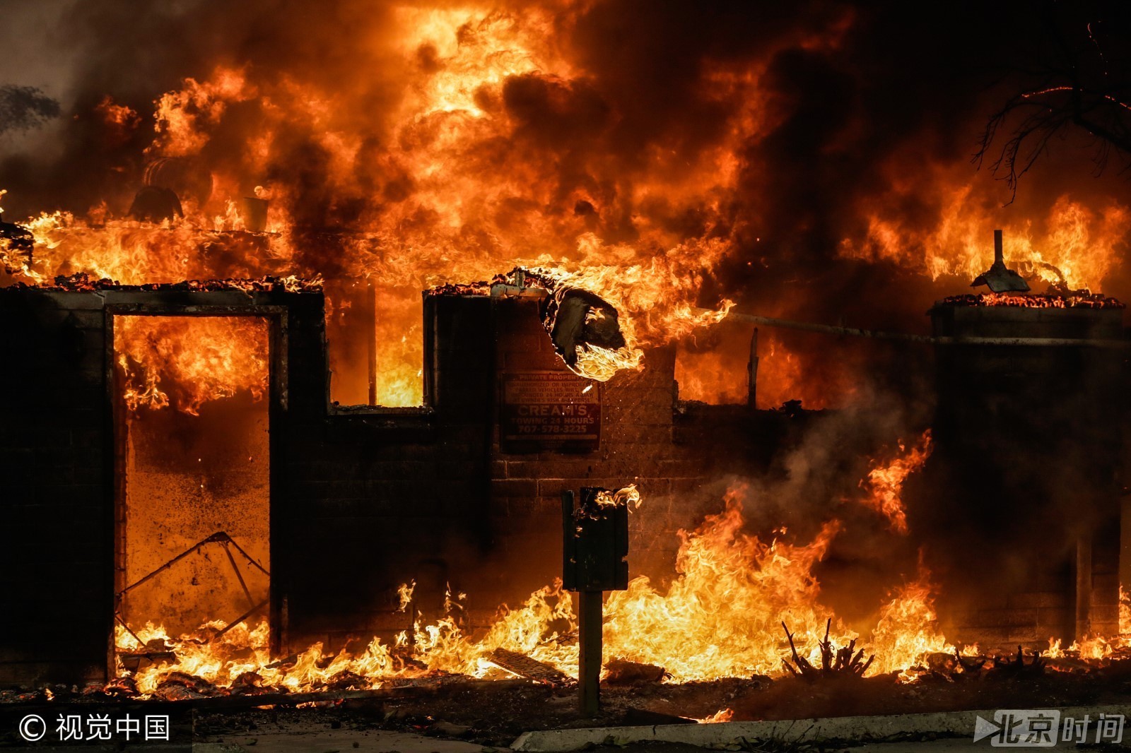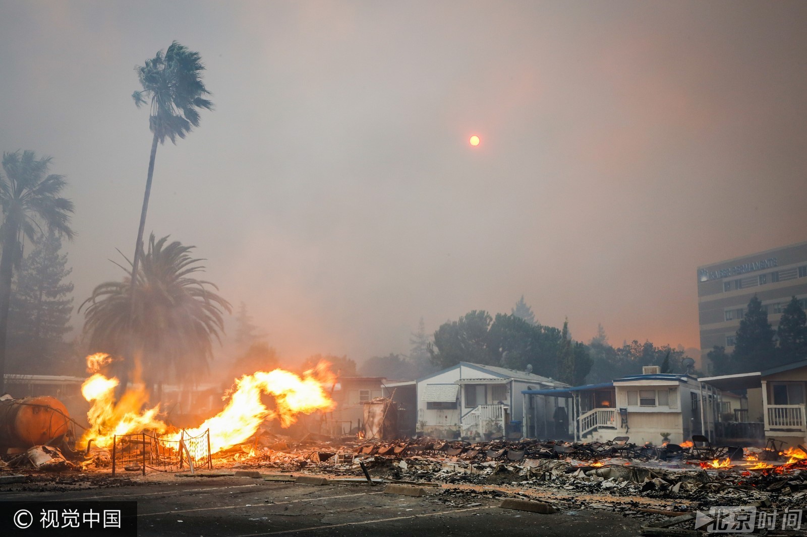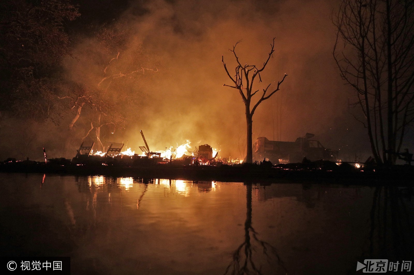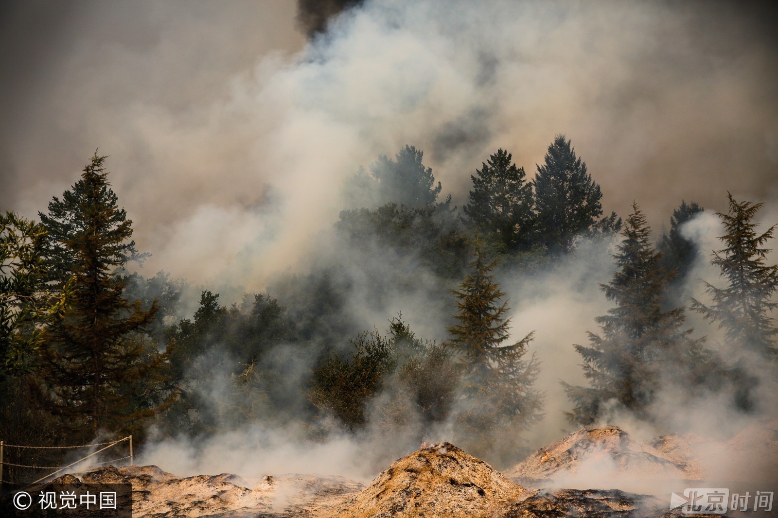 当地时间2017年10月9日,美国加州纳帕,纳帕谷葡萄酒区发生火灾,现场火光冲天。