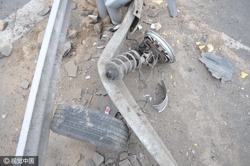 2017年2月28日,在山西阳五高速章召枢纽路段发生了这样一起交通事故,一辆轿车撞上了道路隔离设施后,转了圈、打了滚,四脚朝天横在路上。