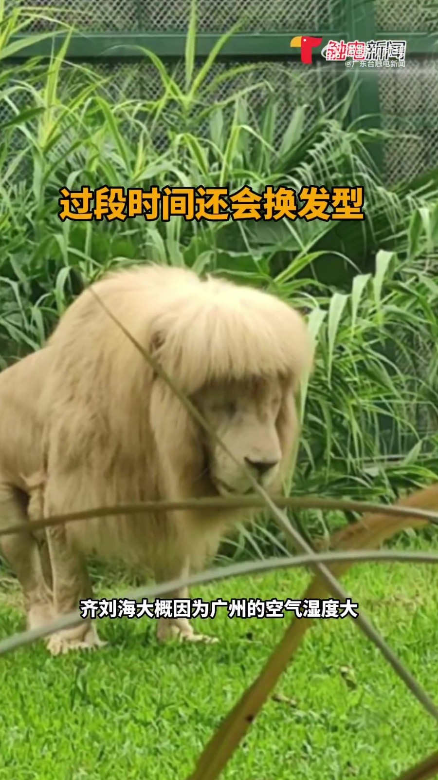 5月29日,广州动物园一只留了齐刘海的狮子火了。有网友称,白化非洲狮从爆炸头变成了齐刘海,怀疑是有人给它剪了头发。