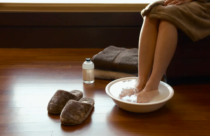 用温热的水泡脚可以加快血液循环,有利于消除双脚疲劳感。