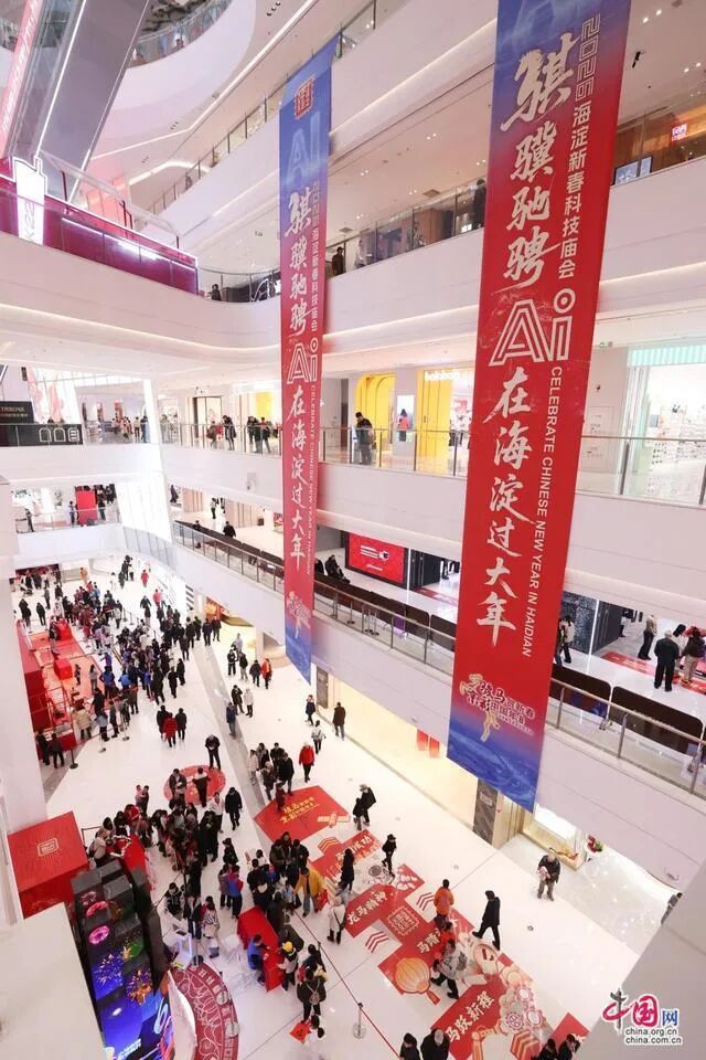 2月19日,大年初三,五棵松万达广场内人头攒动,处处洋溢着喜庆热烈的新春氛围。以“骐骥驰骋,AI在海淀过大年”为主题的2026海淀新春科技庙会正式拉开帷幕,传统年俗与前沿科技在此碰撞交融,为市民献上一场充满科技范儿的新春盛宴。