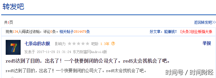 在国内某知名股吧中,有的网友就直言:“red5达到了目的,出名了!一个快要倒闭的公司火了。red5太会找机会了吧。”