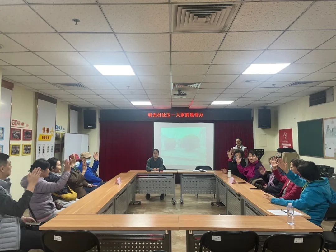 前期方案制定后,社区以“大家商量着办”议事协商机制为抓手,通过张贴通知广泛征集意见,同时组织物管会成员及居民代表召开线下沟通座谈会,详细讲解改造方案,并得到了全票通过。