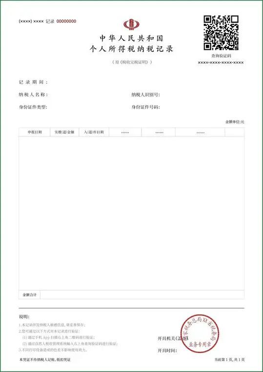 (1)根据国家税务总局统一规定:2019年及以后为个人所得税纳税记录,2018年及以前的为个人所得税完税证明。