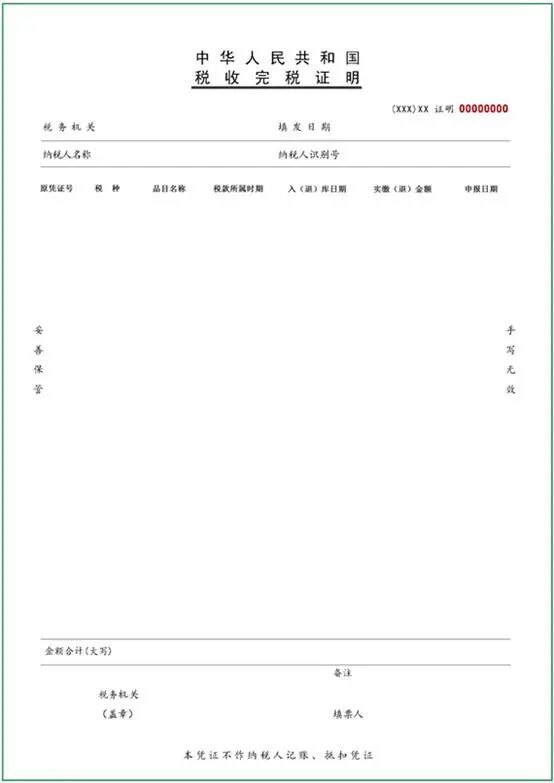 图2:《个人所得税完税证明》表样