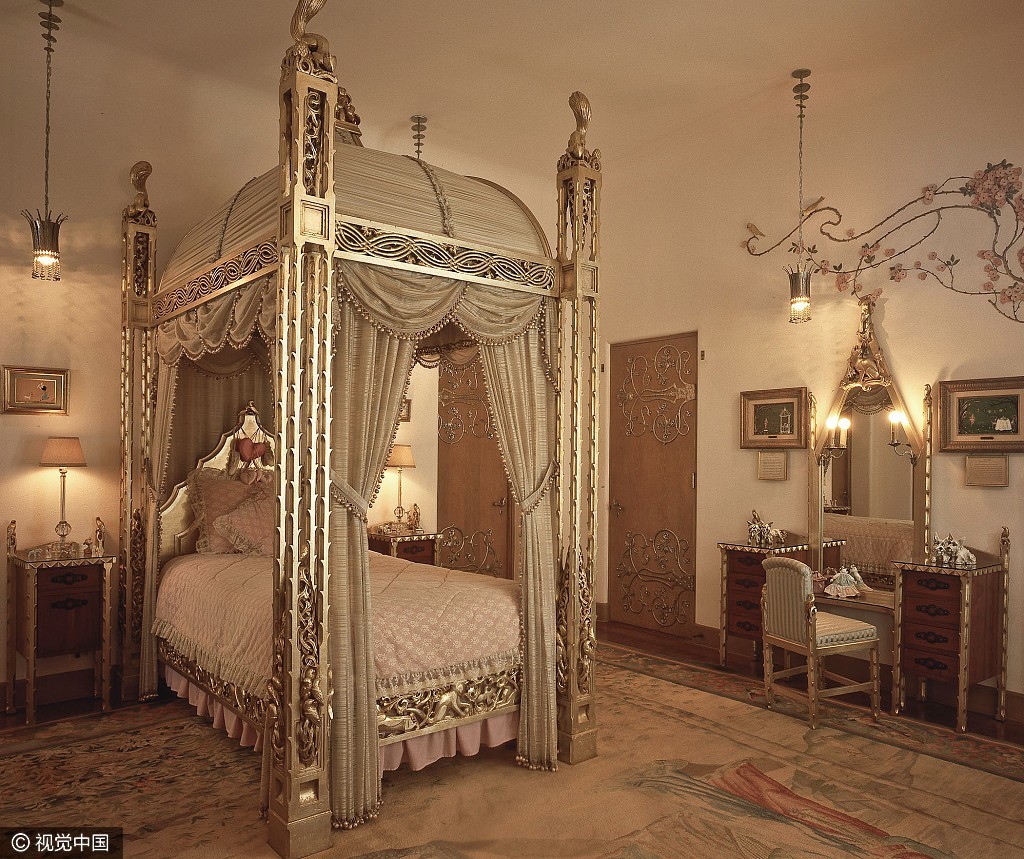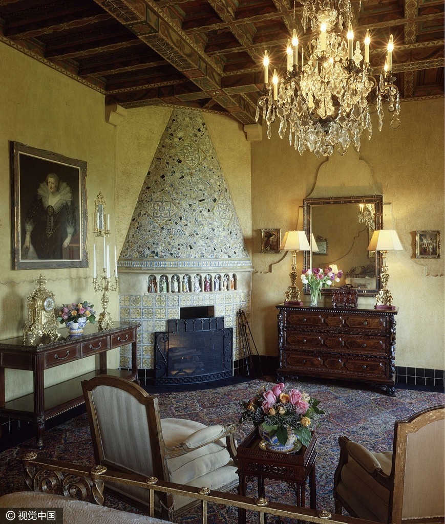 无论是宏伟大气的威尼斯风格拱门、雕刻有动物形象的外墙,还是仿照佛罗伦萨美第奇宫绘画风格的壁画,带有金色床头板的四柱床,抑或是客厅里的金箔,灯具上的宝石,都让人不禁感叹,海湖庄园不愧为“棕榈滩上的明珠”。