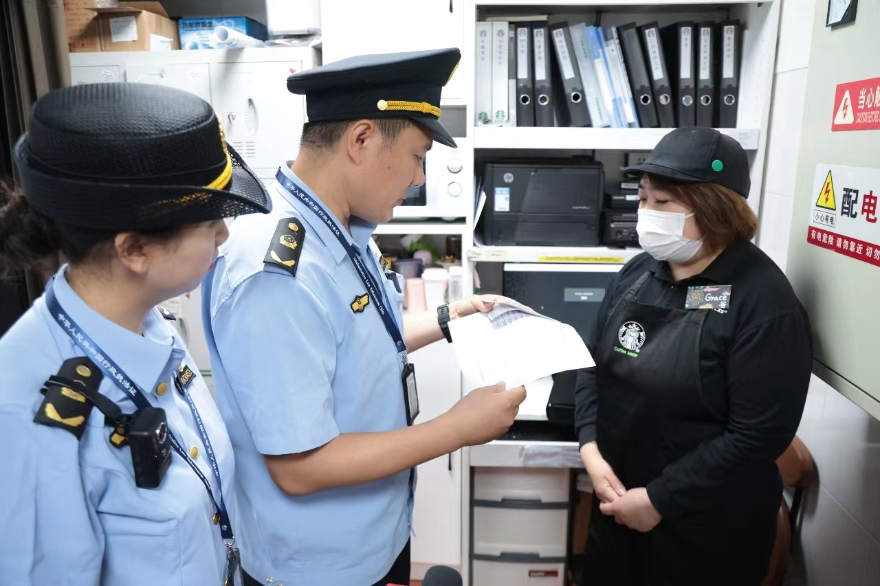 执法人员与股份经济合作社包保干部随机选取东升科技园内的热门餐厅进行专项检查,着重检查各餐饮经营主体的厨房环境卫生、从业人员健康管理、餐饮具清洗消毒等食品安全管理制度落实情况。一是严格落实“两个责任”要求。切实履行好“日管控、周排查、月调度”工作机制,重点查看各经营主体是否按规定配备符合要求的食品安全管理人员、是否执行从业人员健康管理制度。二是加强餐饮加工制作管理。全面排查餐饮服务环节食品安全操作规范,切实做到生熟食品分开存放。以冷冻、冰鲜等产品为重点品种,检查食品销售专柜、专间操作温度是否符合要求,确保夏季冷藏、冷冻食品安全。三是强化原辅料购进质量安全管理。仔细核查经营主体是否按规定落实索证索票和进货查验制度,确保购进的原辅料质量符合国家食品安全标准。有序推进餐饮企业落实“制止餐饮浪费专项行动”工作要求,提醒消费者按需点餐、主动打包,坚持文明用餐、杜绝浪费。