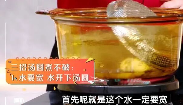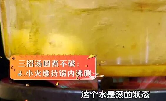 2、用勺子去转动水,利用水的转动让汤圆不沉底、不粘底;