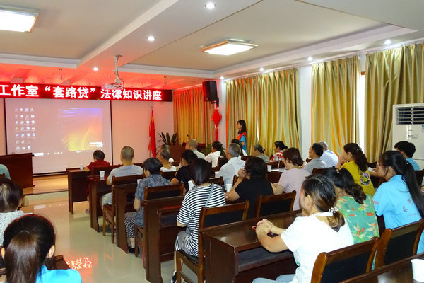 上午,大家集中悬挂法制宣传横幅、张贴标语,志愿者们通过发放宣传单页,为社区居民群众积极普法,营造良好的法制宣传舆论氛围。下午法官刘萍工作室举办法制知识讲座,揭露“套路贷”的套路目的和行径;这类严重侵害当事人合法权益,扰乱金融市场秩序,影响社会和谐稳定的新型诈骗受到全国扫黑除恶专项斗争领导小组的重视,国家召集有关部门部署公安机关在扫黑除恶专项斗争中,对“套路贷”新型黑恶势力犯罪开展集中打击,推进乱象整治与扫黑除恶高度契合,为居民解决真正的生活难题。