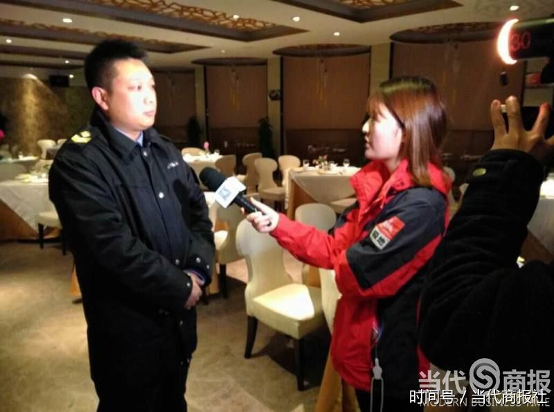 图片文字说明:执法人员现场接受媒体采访