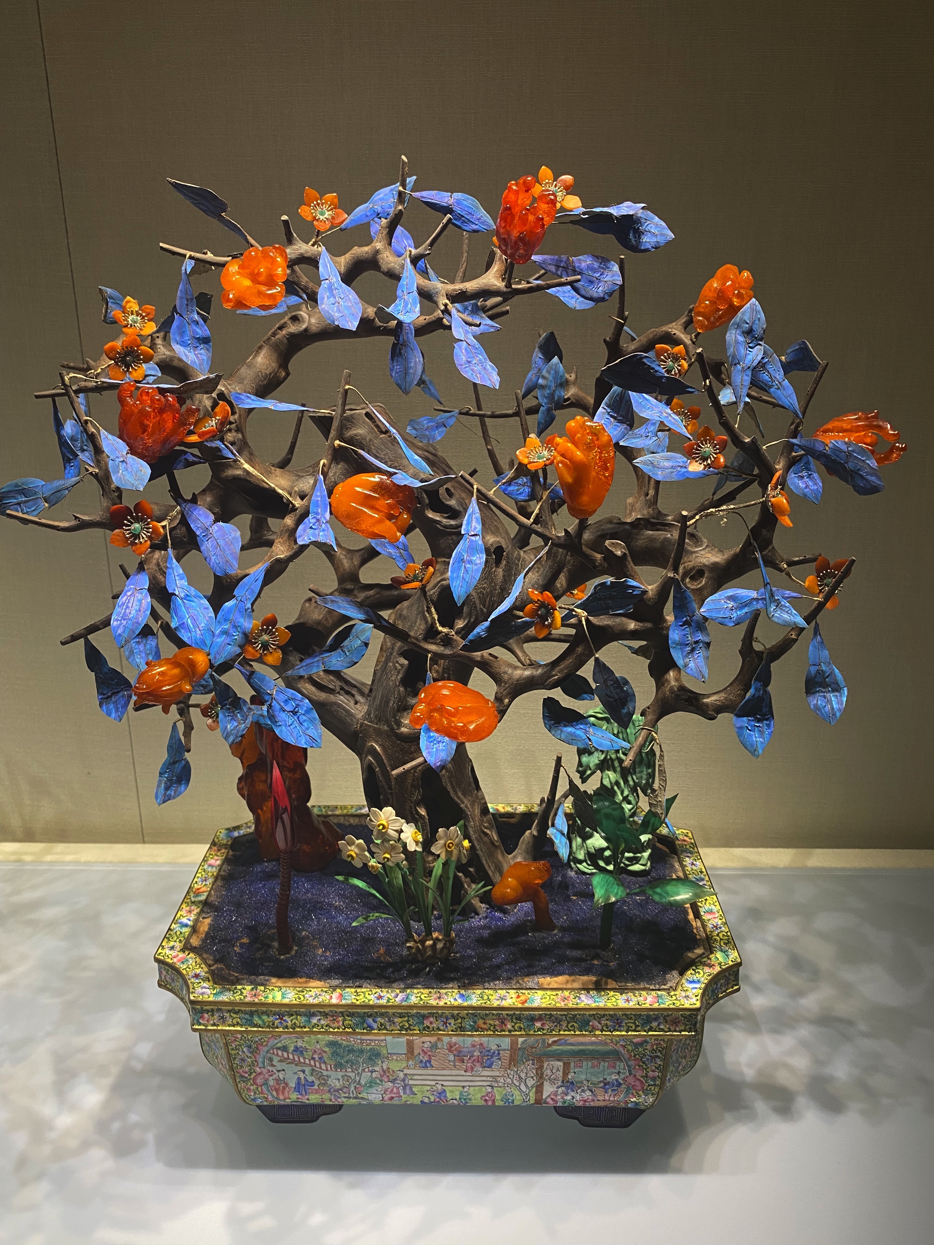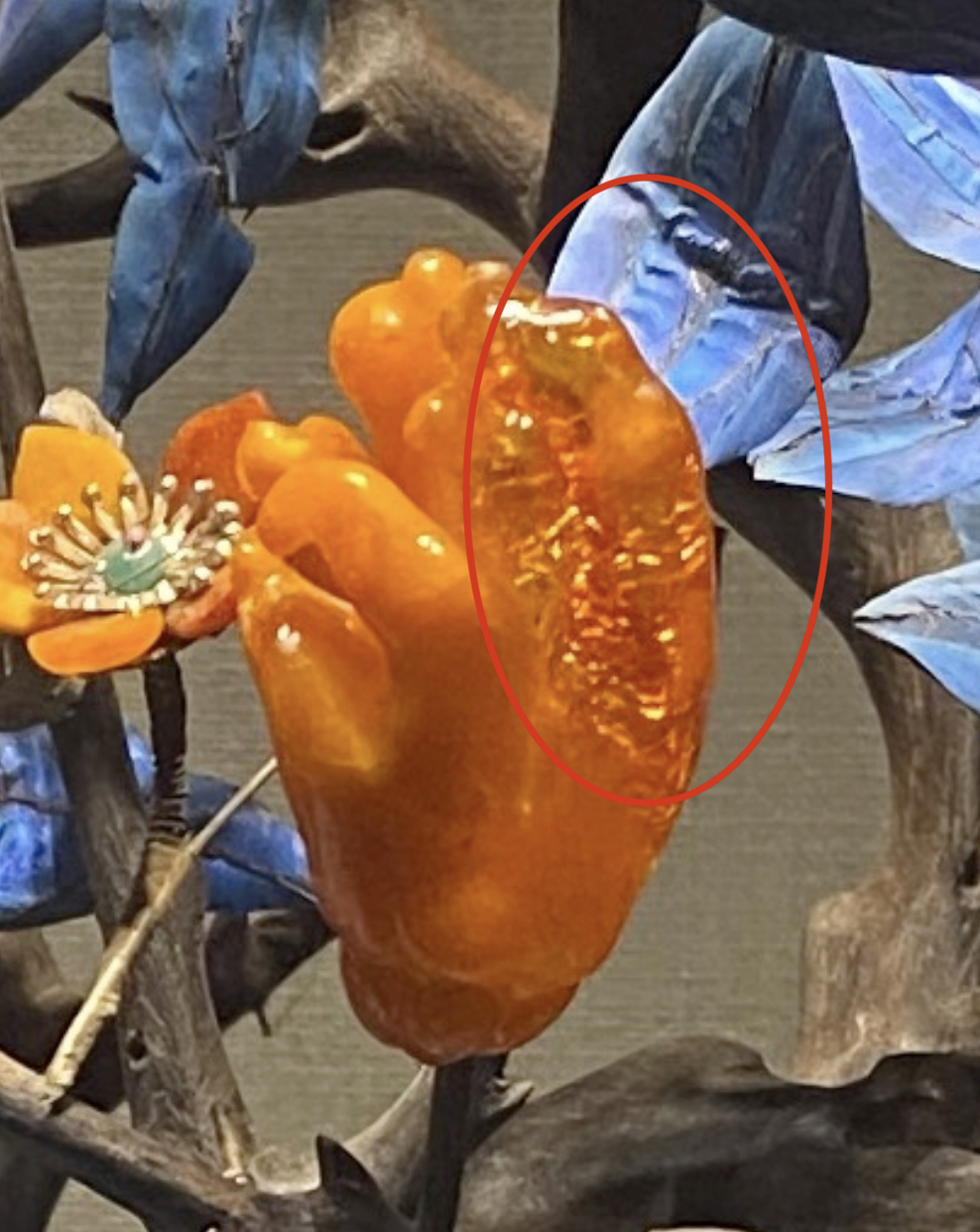 这简直就是工艺品的巅峰之作,栩栩如生惹人爱。就说这佛手花的材质,一半是琥珀一半是蜜蜡,这样的材料一块就很难得,现在是找了一树!造型美、工艺绝、材料珍!叹为观止!也是我最爱的一件工艺品。