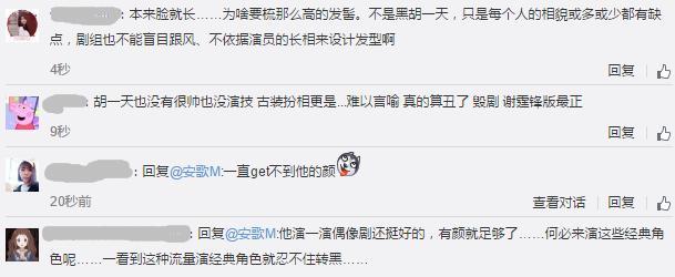 虽然也有不少胡一天的粉丝力挺胡一天,称其颜值高、古装扮相帅气,但也有不少理性的粉丝发声,称“80后喜欢林志颖版,90后喜欢谢霆锋版,也许胡一天版对00后来说就是经典!不敢说一定是,但是胡一天是一个新人 ,挑战每个角色都会用心去诠释,不足之处我们也会欣然接受。”