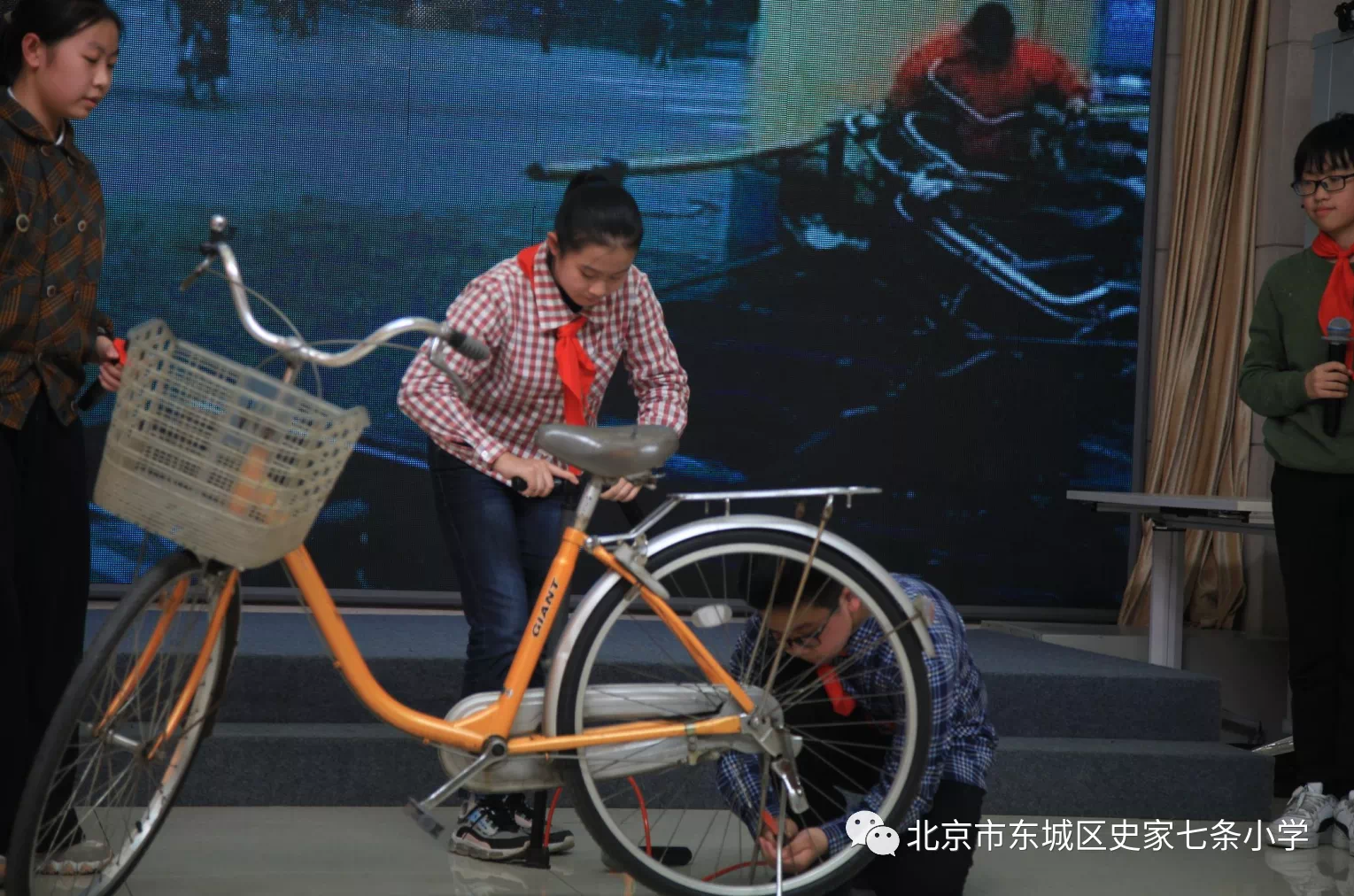 1993年,七条小学的孩子们第一次拿起了打气筒,开始了红领巾义务打气活动。这支小小的打气筒,经由一代又一代少先队员的传承,经历了30年,一万多名少先队员的参与,成为了东城区北京市一个著名的小小公益岗。