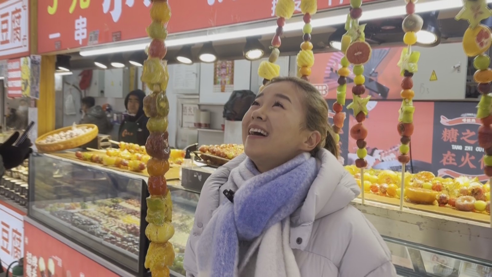 走在尔滨的大街小巷上有各种各样的花式糖葫芦,让人们感到幸福和浓浓的烟火气。