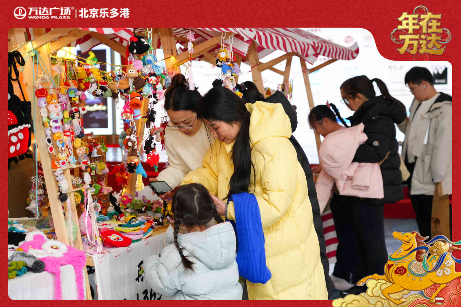 与此同时,走进乐多港万达广场,“花开HORSE超级RICH”主题新春美陈格外吸睛,马年吉祥元素与繁花造型巧妙融合,色彩鲜艳、寓意美好;外广场“五福临门”创意毛线编织石墩,造型可爱、独具匠心。同时,购物满减、学雷锋公益义诊、舞狮舞龙闹元宵、元宵喜乐会等活动轮番上演,既还原了传统年俗风貌,也为市民打造了一站式新春消费、休闲体验场景。