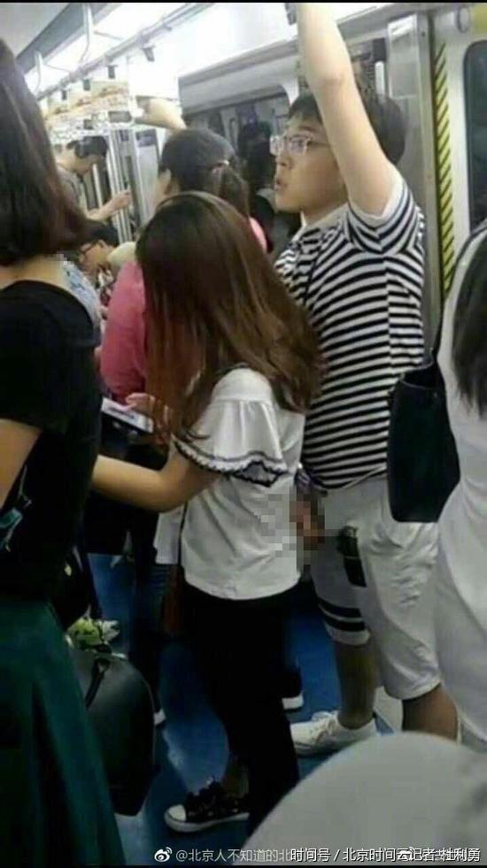 曝北京地铁一男子掏生殖器猥亵前面女子 表情淡定_北京时间