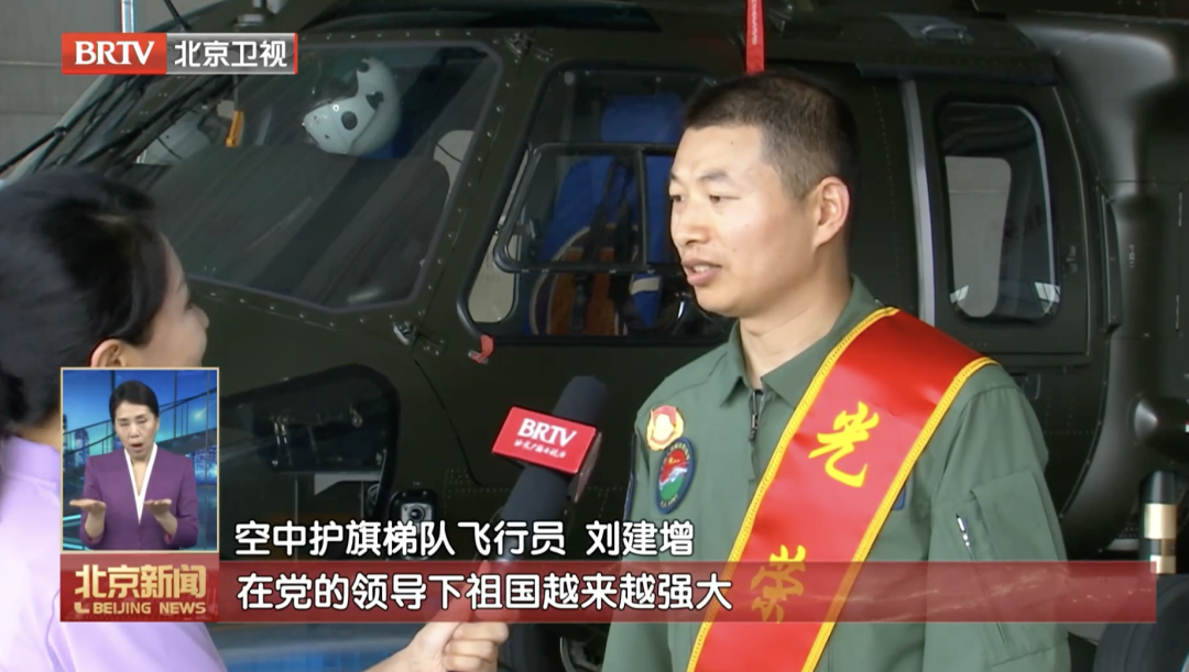 空中护旗梯队飞行员刘建增:“直升机悬挂的党旗与天安门悬挂的国徽交相呼应的那一刻,我深刻地感受到在党的领导下,祖国越来越强大。”