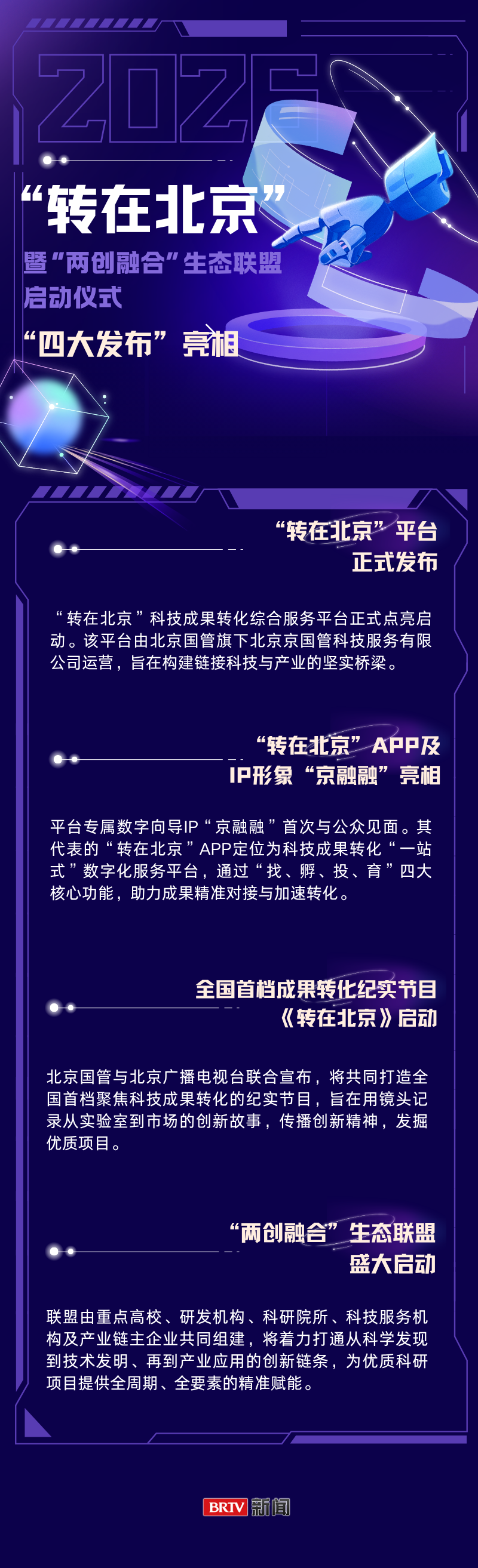 大会的重磅环节是“转在北京”发布暨“两创融合”生态联盟启动仪式。该环节通过四大发布,系统展示了北京在构建全链条科技成果转化服务体系上的创新布局。