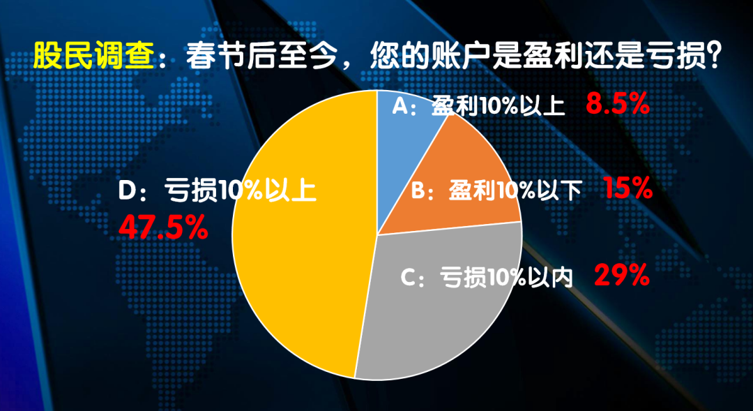 调查结果显示,近半数的投资者春节至今账户亏损超过10%。