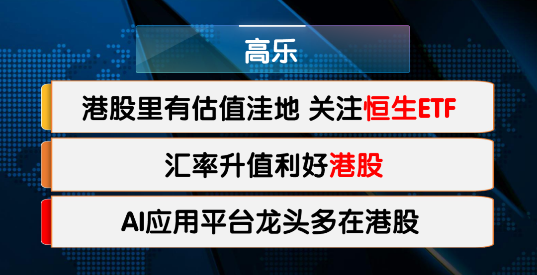 高乐认为,港股里有估值洼地、建议关注恒生ETF: