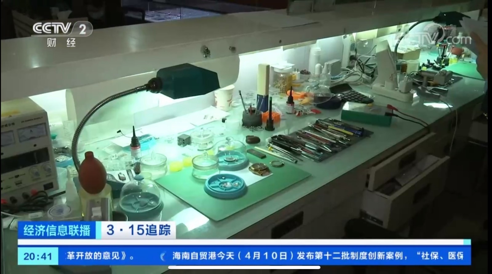 不仅在商业宣传上误导消费者,今年3·15晚会曝光了这家企业存在“名表维修骗取费者价款”“小病大修”的问题。在3·15当晚,执法人员从其经营场所维修柜台处选取两块手表,一块是瑞士进口的宝齐莱牌手表,维修单写明的维修项目是换自动轴,收费4850元;另一块是国产的依波牌手表,维修单写明的维修项目是更换游丝,收费580元。而上述两块手表经专业检测机构鉴定,结果均与该店维修情况大相径庭。