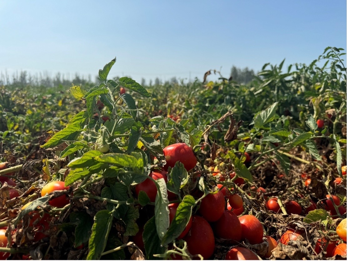 ▲新疆昌吉番茄田里的番茄等待采收。刘浩|摄