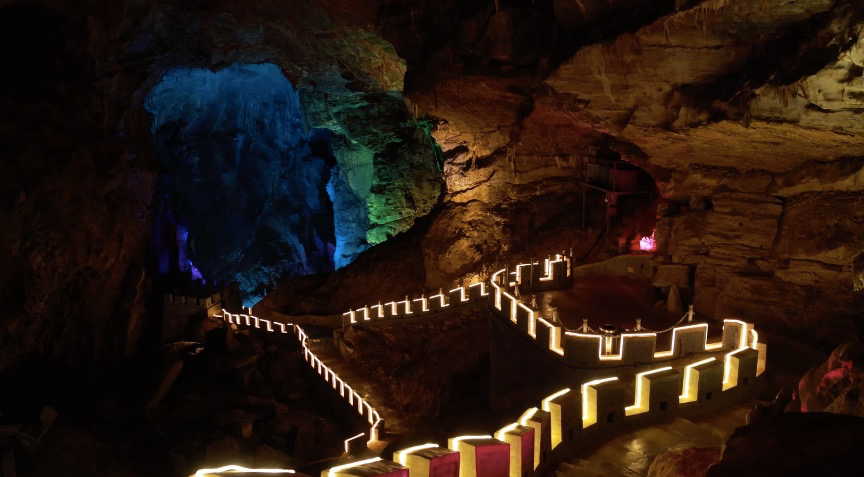 八奇洞景区位于北京市门头沟区潭柘寺镇平原村,共有1350米的游览线路,最高落差达150米,以地下独一无二的“8”字及八大奇观而著名。沿途不仅有各种地下河冲击形成的独特景观以及形态各异的钟乳石,洞壁上还有罕见的珍稀矿石结晶,堪称教科书级的地质奇观。