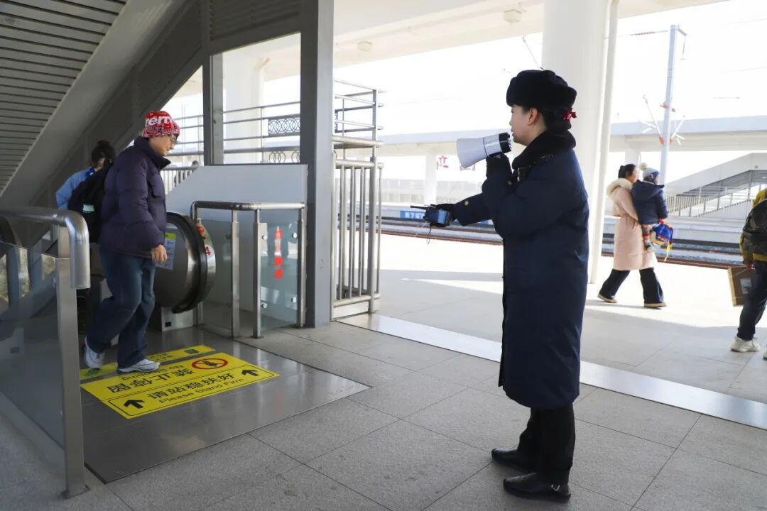 6时20分,天还未亮,客运员们便提前到岗,仔细检查站台安全标识、核对列车停靠信息,准备迎接6时50分的首趟列车,直到19时49分,最后一趟列车平安驶离,旅客全部离开,他们才结束一天的值守。一天下来,每名客运员要往返站台与候车大厅之间,接送25辆列车,保障近1500名旅客安全有序乘降。客流高峰时,1小时内要连续接发3趟列车。