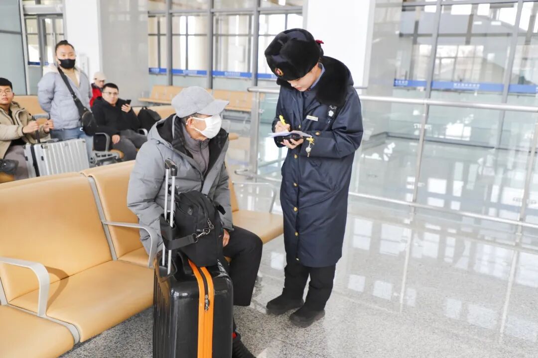 在顺义西站,还有许多在春节期间坚守岗位的一线工作者——维护站内秩序的公安人员,守护环境卫生的保洁员。他们中,有坚守多年的老员工,也有初担重任的新力量。他们以岗为家、以责为伴,用温情守护归途,为这个春节增添了最动人的温暖底色。