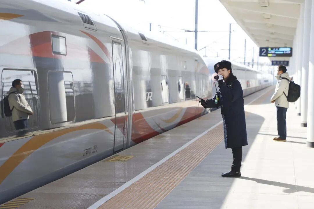 为保障旅客便捷出行,顺义西站精准调配运力,增开出京、进京方向列车共8列,预计假期客流量将达1.35万人次。作为连接旅客与列车的重要纽带,客运员们扛着沉甸甸的责任,用坚守守护万家团圆。
