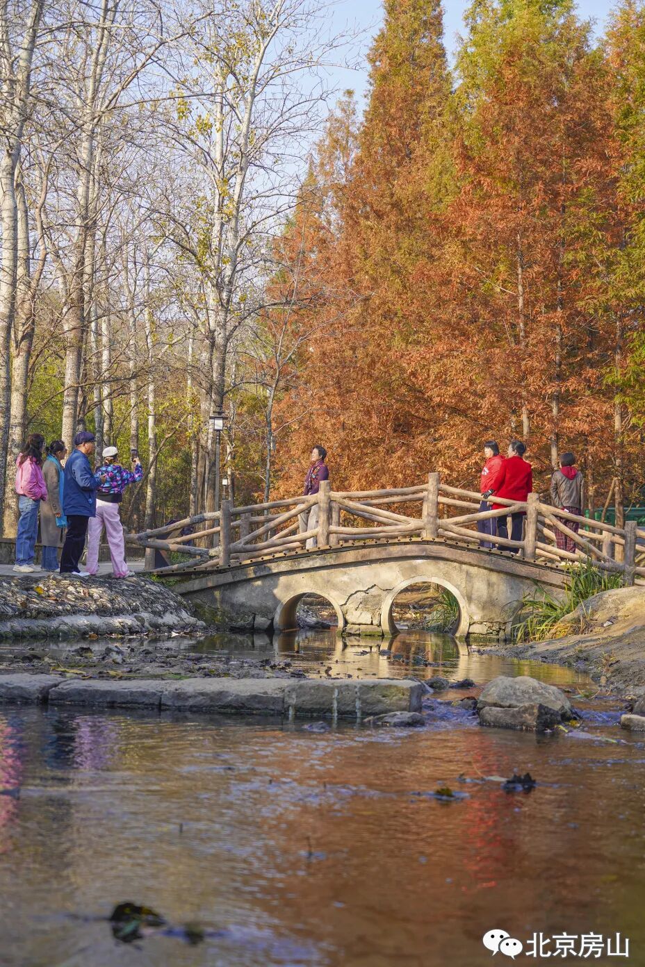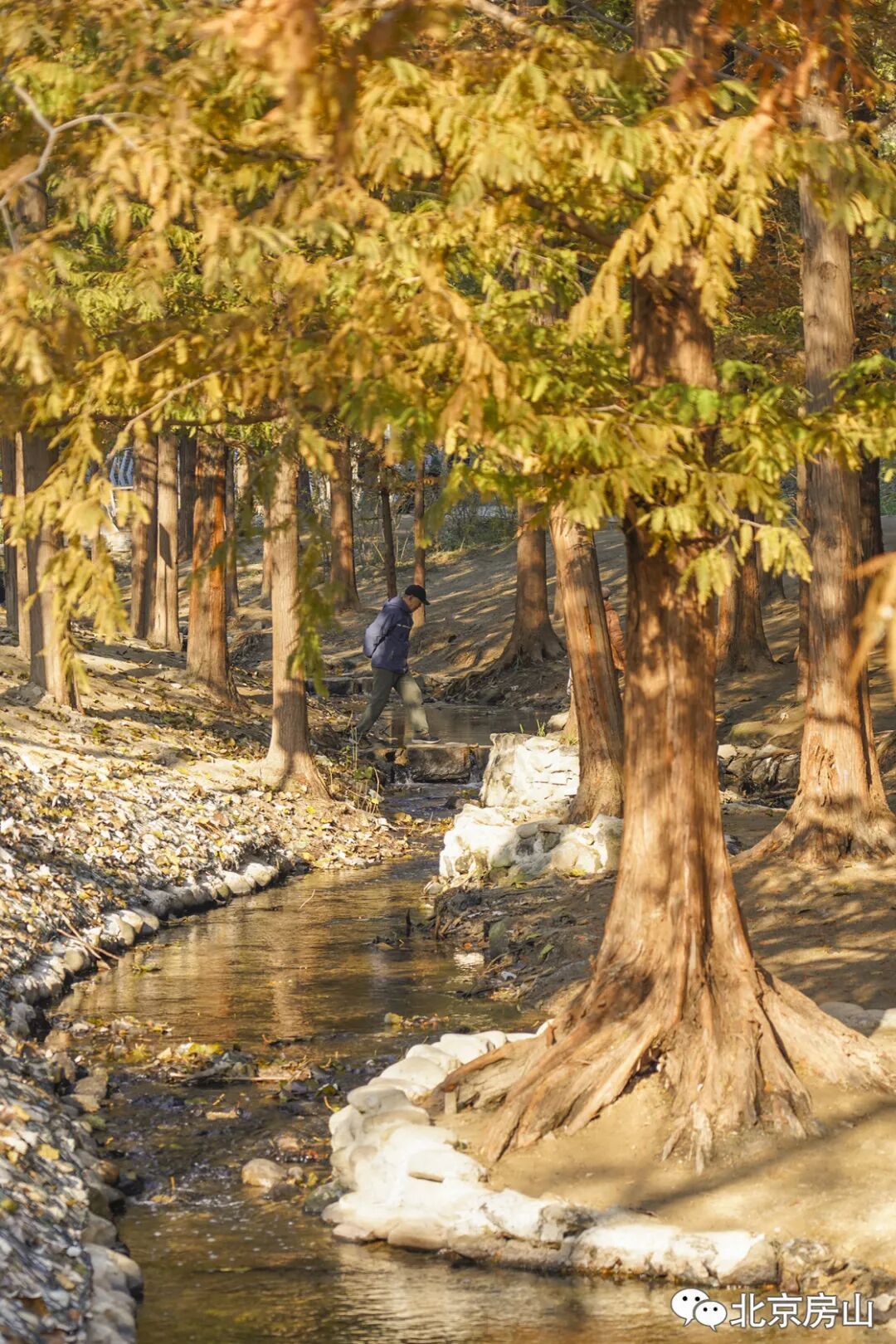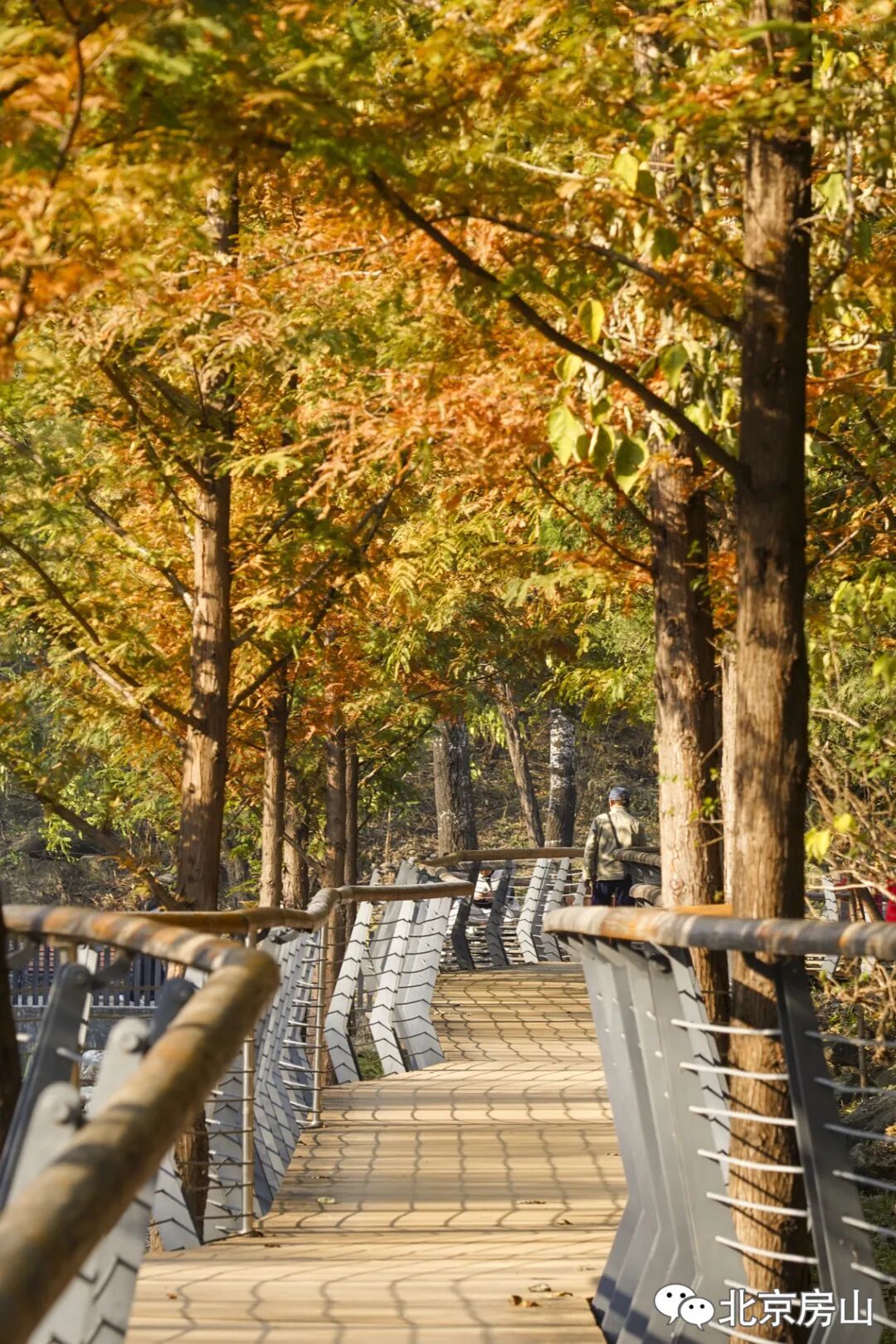 想轻松赏景?沿林间木栈道慢慢溜达就好,身旁是缀满橘绿叶片的挺拔水杉,呼吸着满是草木清香的空气,惬意又解压;