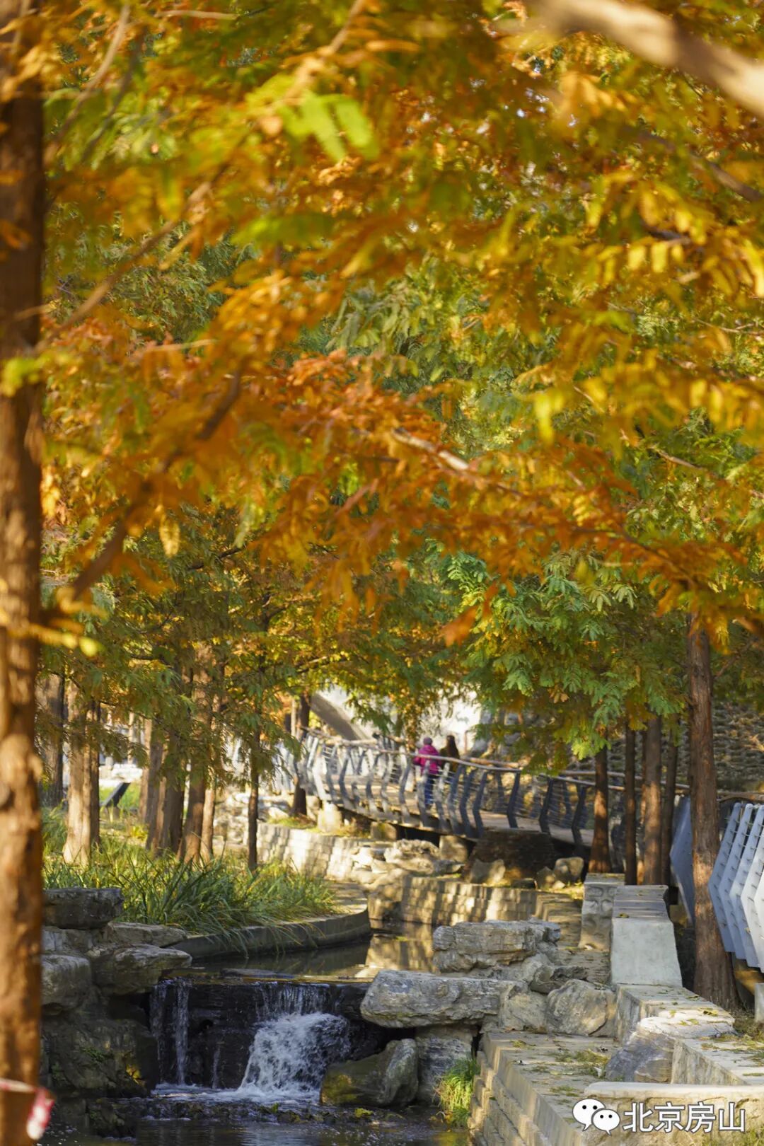 走进公园,成片水杉林瞬间抓住视线。原本翠绿的水杉叶,眼下正悄悄换上“暖色调盛装”——有的染成明亮的橘色,有的还带着几分青绿,层层叠叠缀满枝干。风一吹,橘绿交织的枝叶轻轻晃动,阳光穿过缝隙洒在林间,树影倒映在清澈溪流里,“树在水中立,水在林间流”的画面暖到心上,让人忍不住放慢脚步,沉醉在这份诗意里。