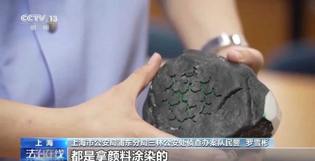 上海市公安局浦东分局三林公安处侦查办案队民警罗雪彬:这种练功券是为了迷惑被害人,意思是像这种大石头如果开出来是真的翡翠原石的话就能赚很多钱。