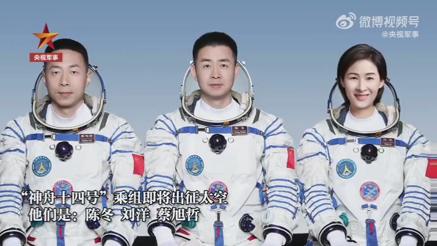 据中国载人航天工程办公室消息,陈冬、刘洋、蔡旭哲3名航天员将执行神舟十四号载人飞行任务,由陈冬担任指令长。90秒视频带你了解神舟十四号任务乘组。明天,他们将飞向太空,祝一路顺利!