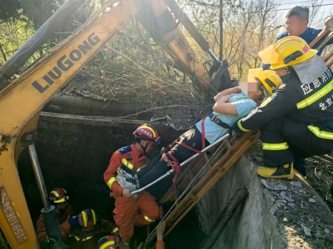 “我同事开着挖掘机不小心掉到井里边了,受伤了,动不了!你们快来救他!”4月7日下午15时48分,怀柔区消防救援支队雁栖消防站接到一通急促的报警电话。报警人称,在怀柔镇一处扩建工地内,一名操作挖掘机的司机因操作不当,连人带车坠入一口深3.4米、直径约5米的井中,情况危急。雁栖消防救援站接到报警后,迅速出动赶赴现场。