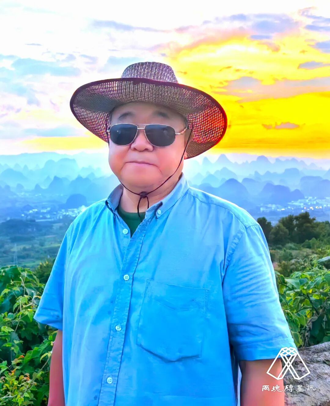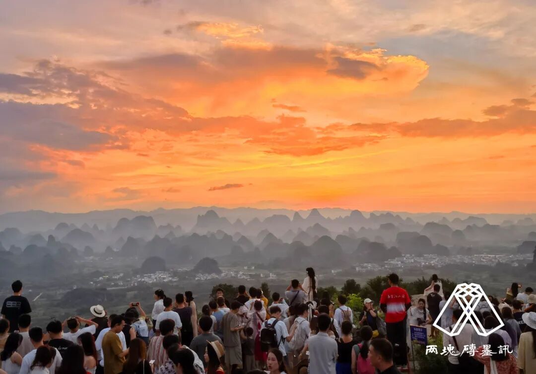 莫言 王振在广西桂林阳朔看晚霞摄影 陈玲