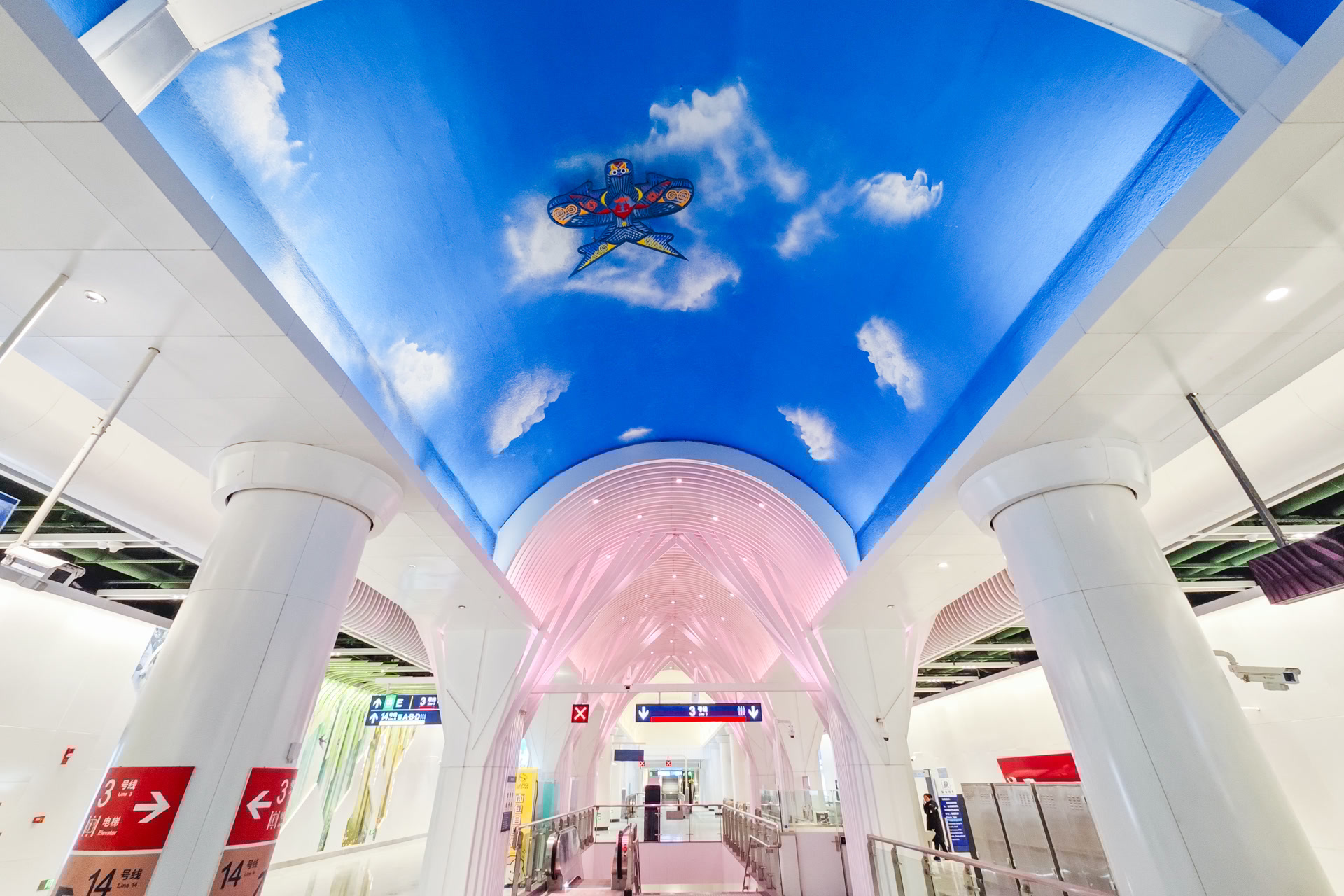 2组列车以4种颜色布置四节车厢,用表现力和艺术感染力较强的手绘方式,让乘客通过流动专列感受一场视觉上的“city walk”。