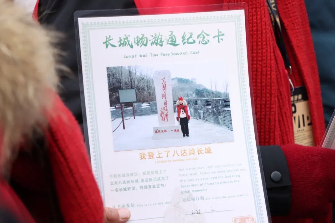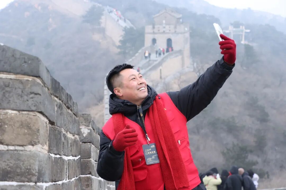 看到吴承言创作的长城墙绘后,八达岭长城景区向吴承言及老人们发出邀约。1月29日,“圆梦之旅”团队踏上了前往北京的旅程。1月30日上午,乡亲们穿戴上景区特意为他们准备的手套、帽子、围巾等,登上了八达岭,一览长城风光。