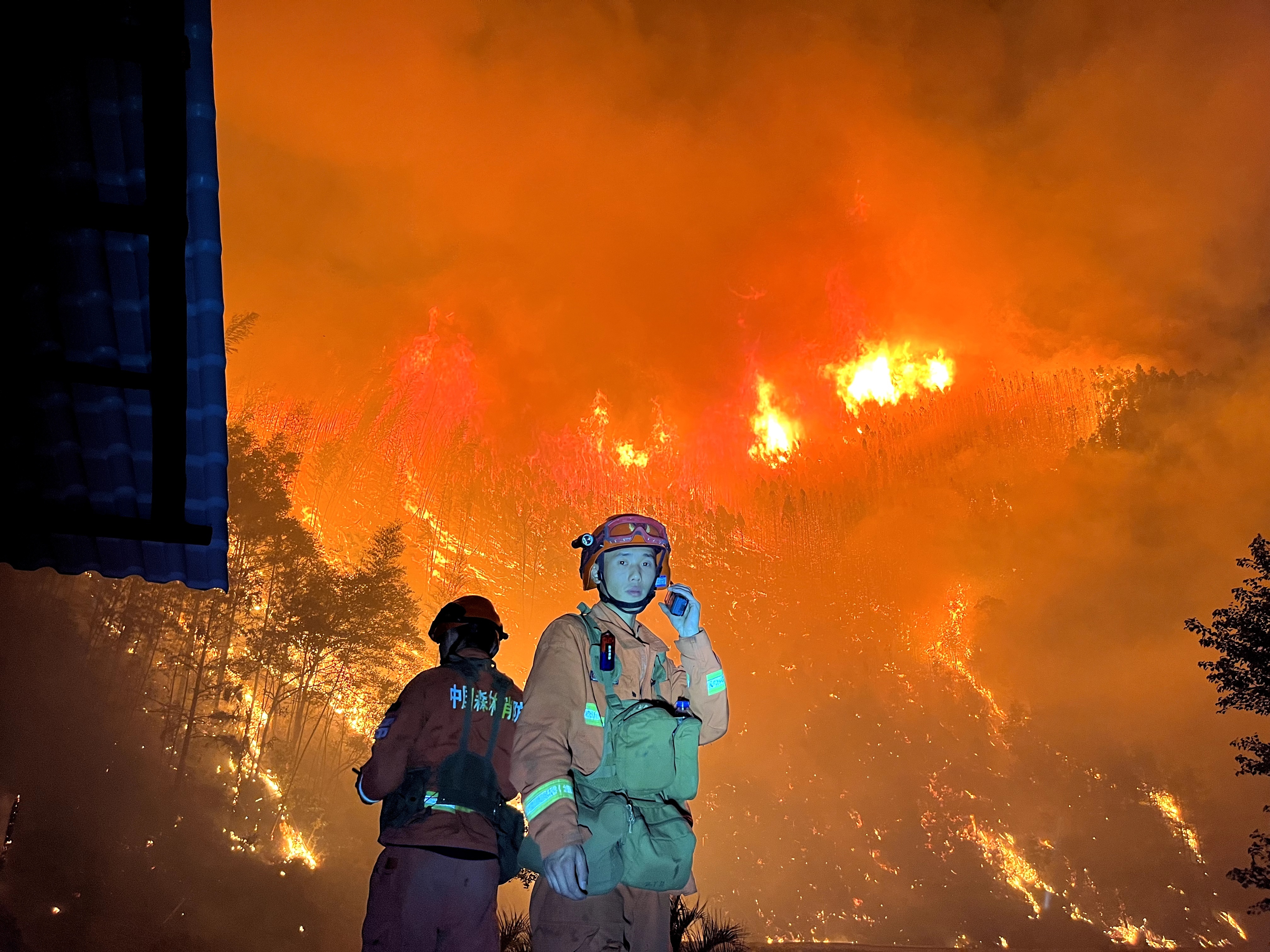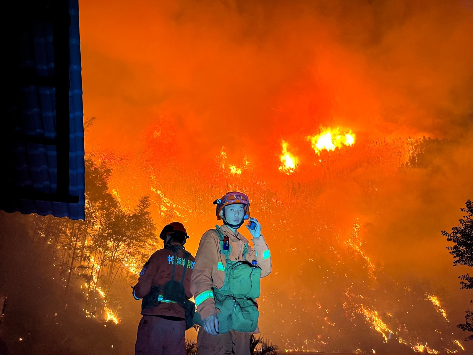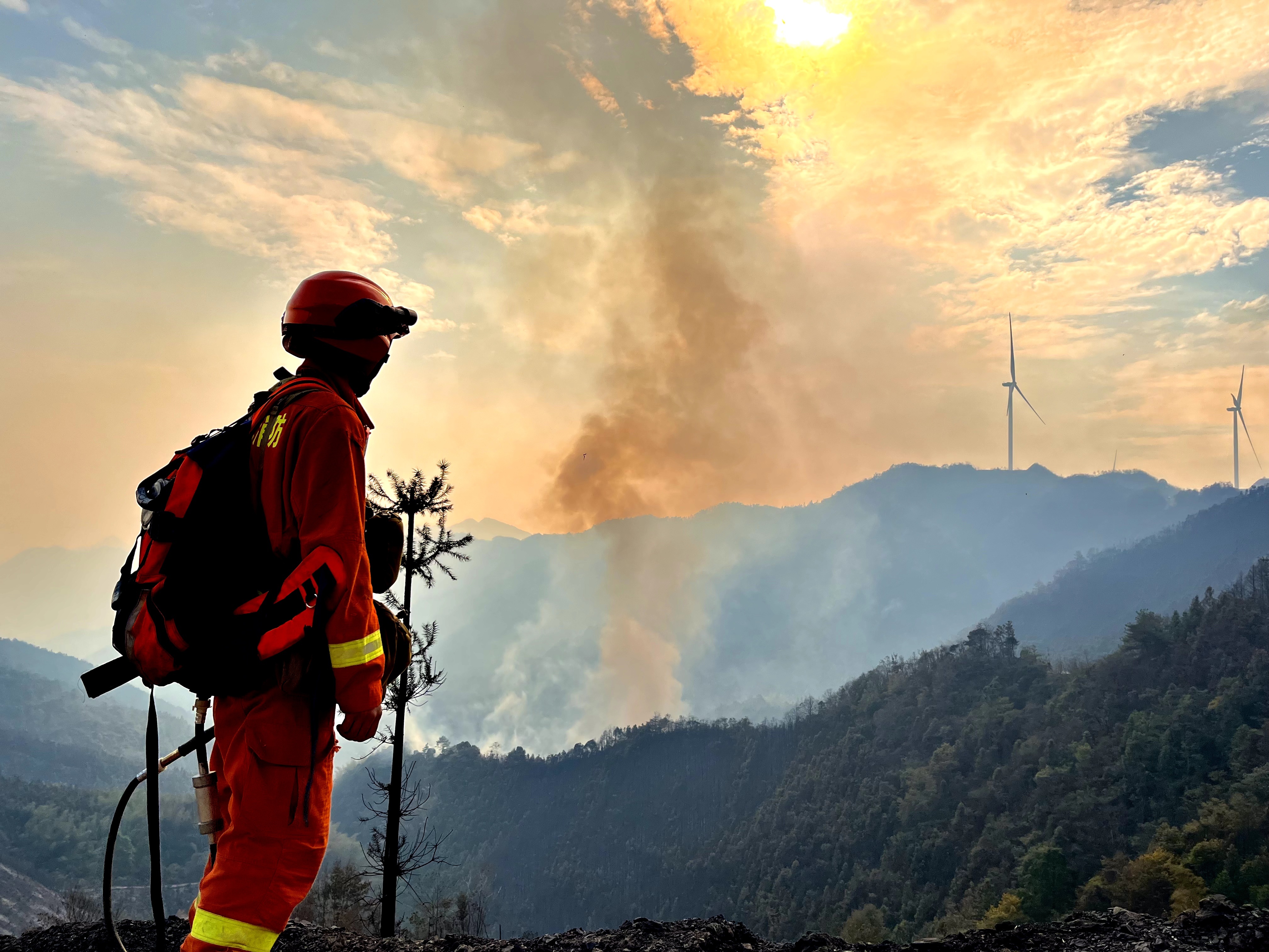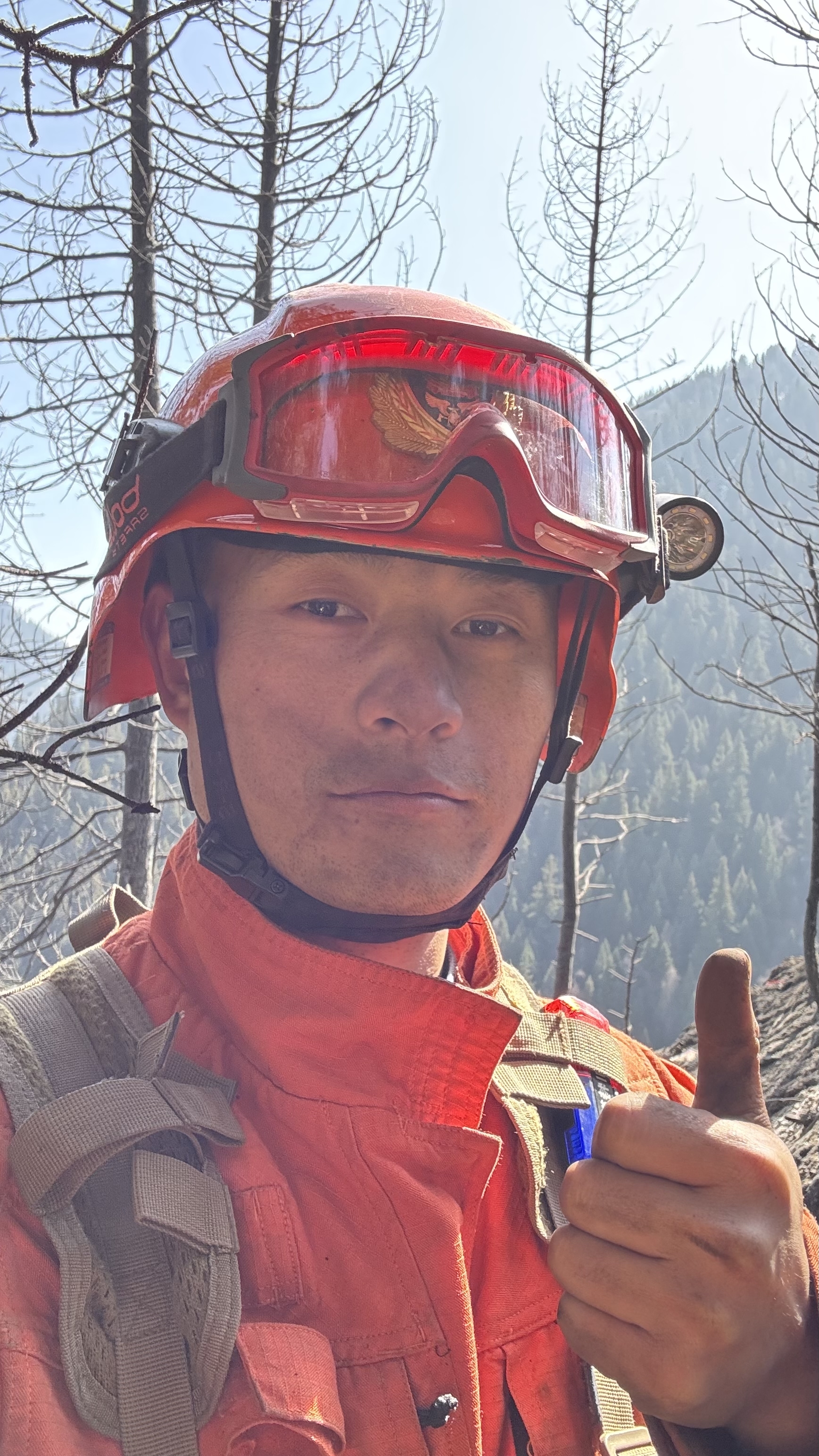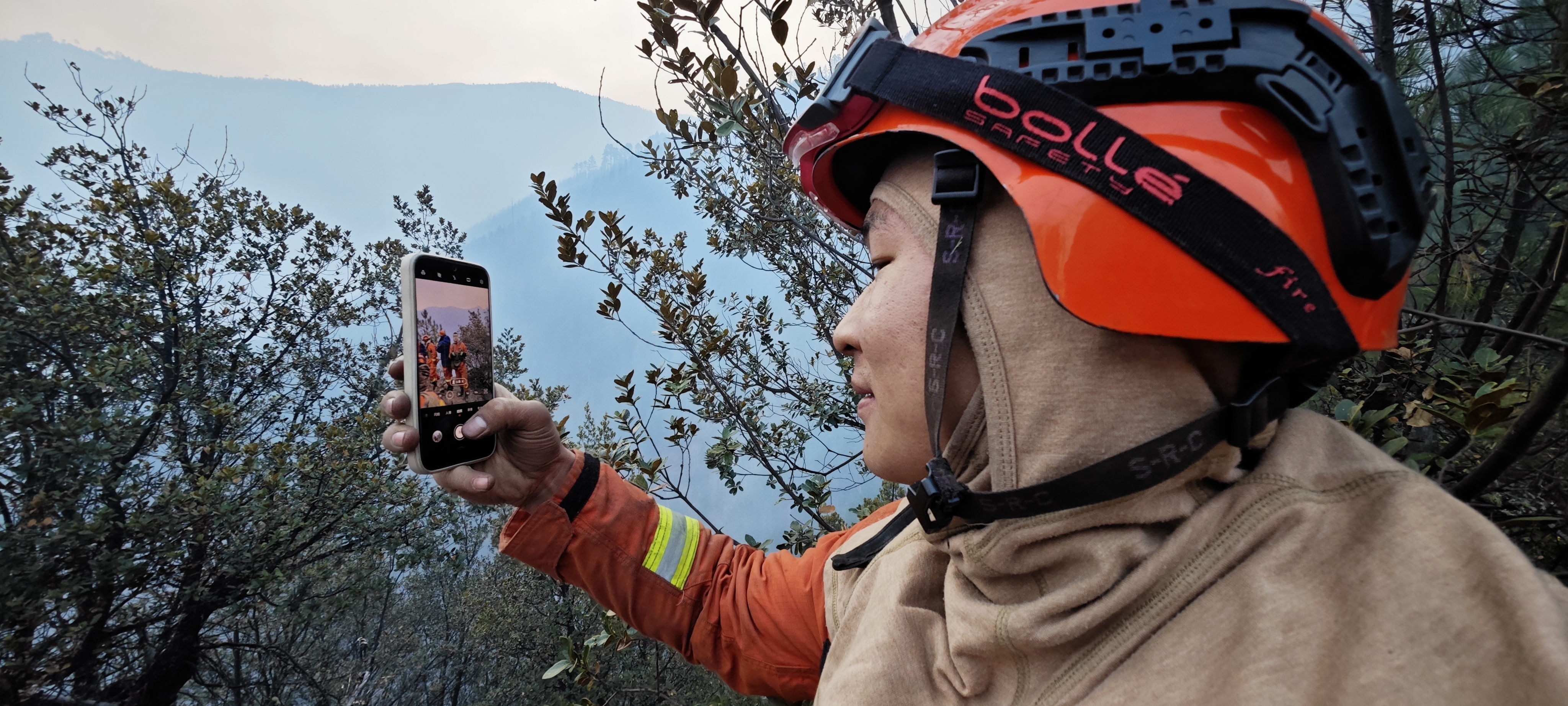 李良友还清晰地记得今年在海拔4300米的雅江火场救援的场景。凌晨的气温在零摄氏度以下,空气里充斥着树木烧焦的味道,每走两步都是对身体极限的挑战。李良友背着一筐管带,手持相机冲在最前面,记录队友们灭火的英勇瞬间。历经漫长的灭火战斗,火势终于得到控制。他脚步蹒跚朝后方走去,高原反应让他的身体承受着巨大压力。回到宿营地后,他顾不上休息,拿出手机编写文稿。鼾声四起的时候,他的手机屏幕还在倔强地亮着。