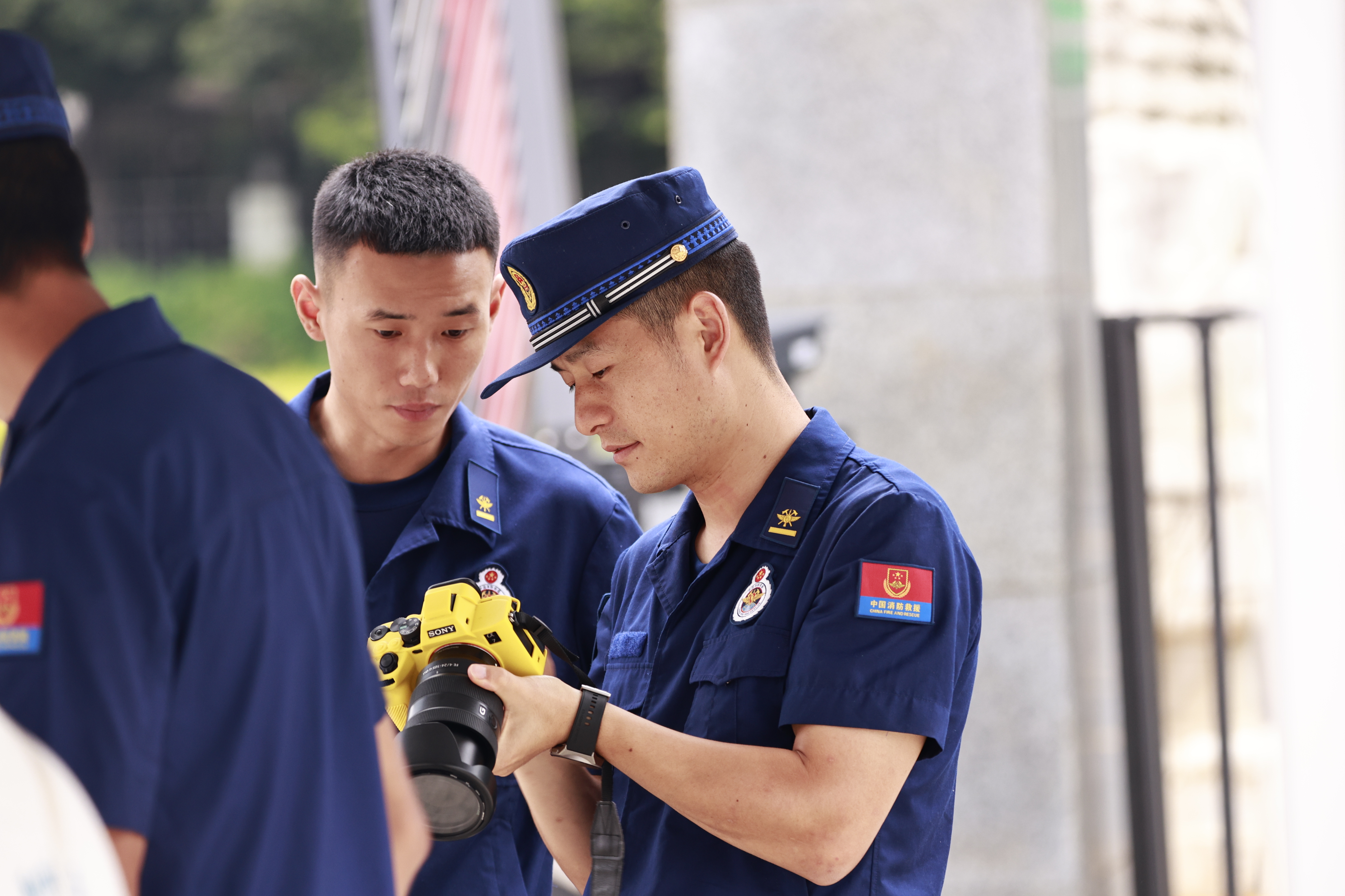 新闻报道员干得辛酸,许多人都能说出来一堆。训练场上,身着橙色防火服的刘乾,背着管带框,提着救援水泵,正训练着,一声“快拍照、录视频”瞬间打破了他的节奏。他立刻抄起相机,穿梭于场地间,定格最佳瞬间。训练结束,队友们去休息,他则快步返回宿舍,坐在电脑前,目不转睛地选片、编辑……时钟嘀嗒嘀嗒地走着,电脑键盘噼噼啪啪地响着,一个个学员的脸庞在张震林眼前闪过。