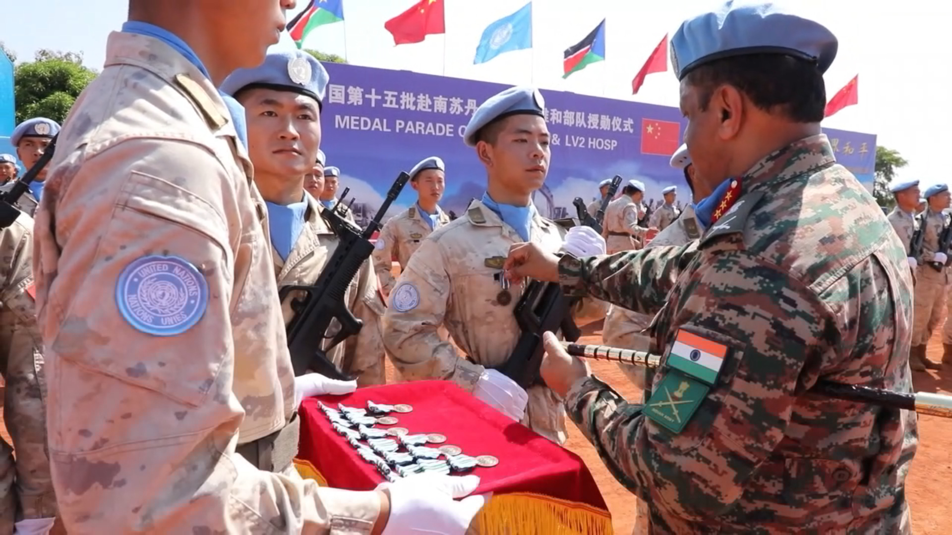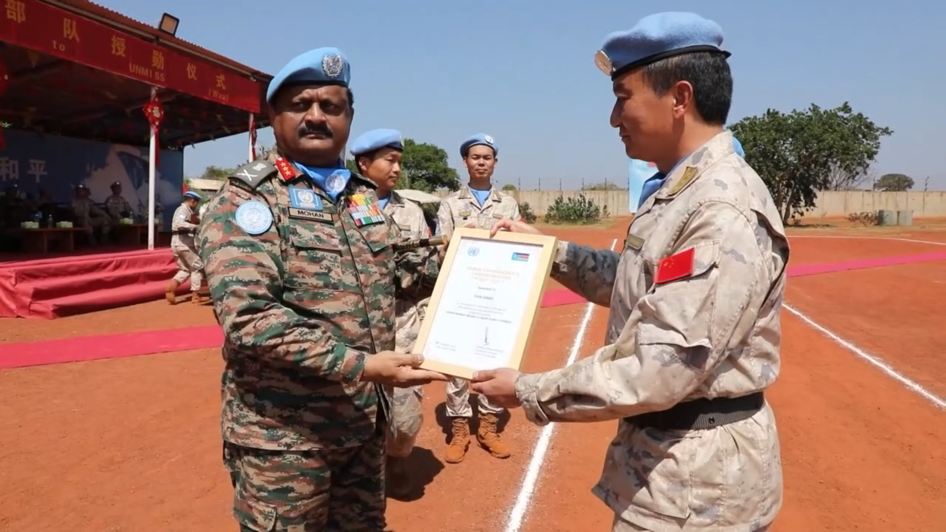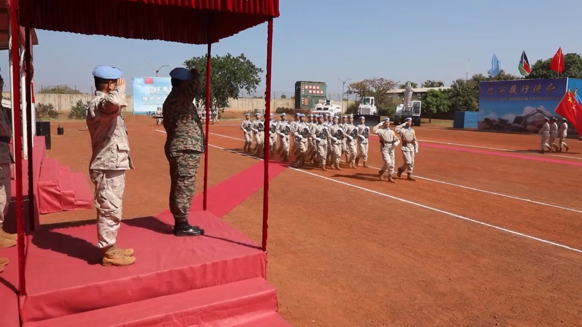 中国第十五批赴南苏丹(瓦乌)维和医疗分队 张雪强:一年来,我们时刻牢记职责使命,不忘铮铮誓言,顺利圆满完成了此次维和任务。分队全体官兵一定会发扬维和精神,聚焦使命任务,奋力攻坚克难,在强军事业上贡献自己的力量。