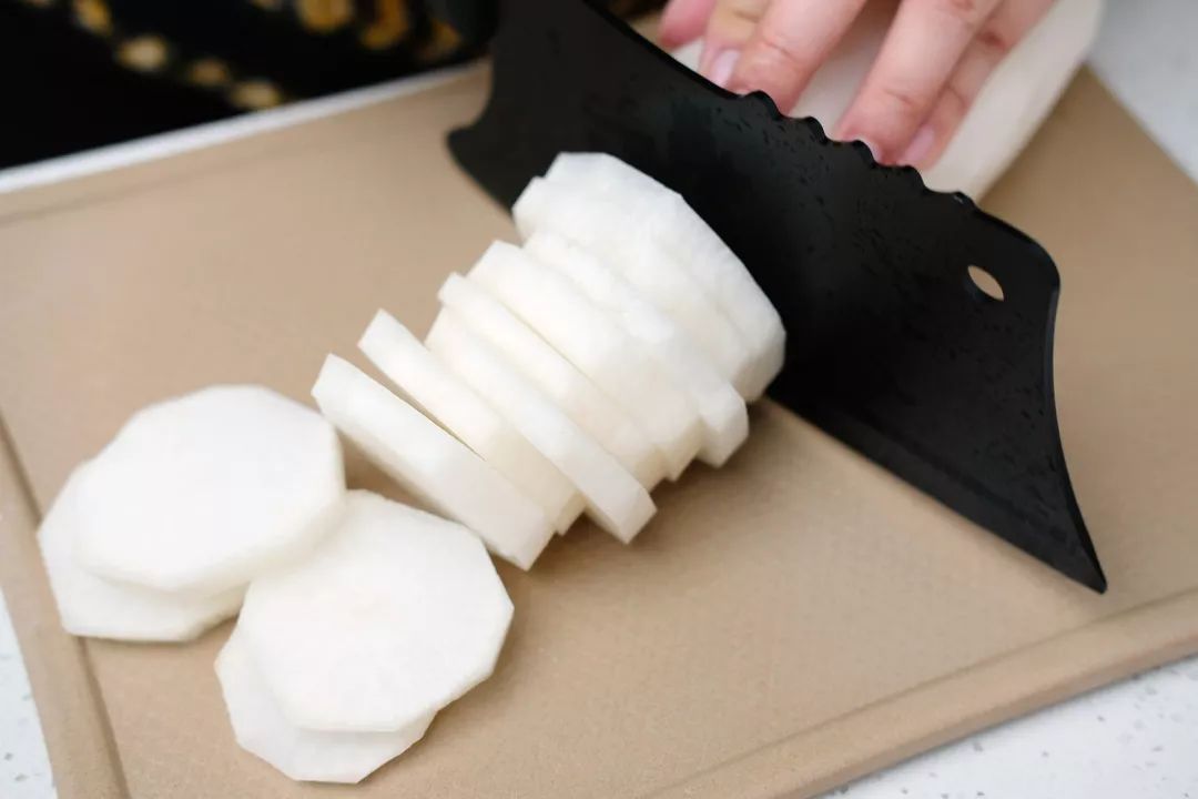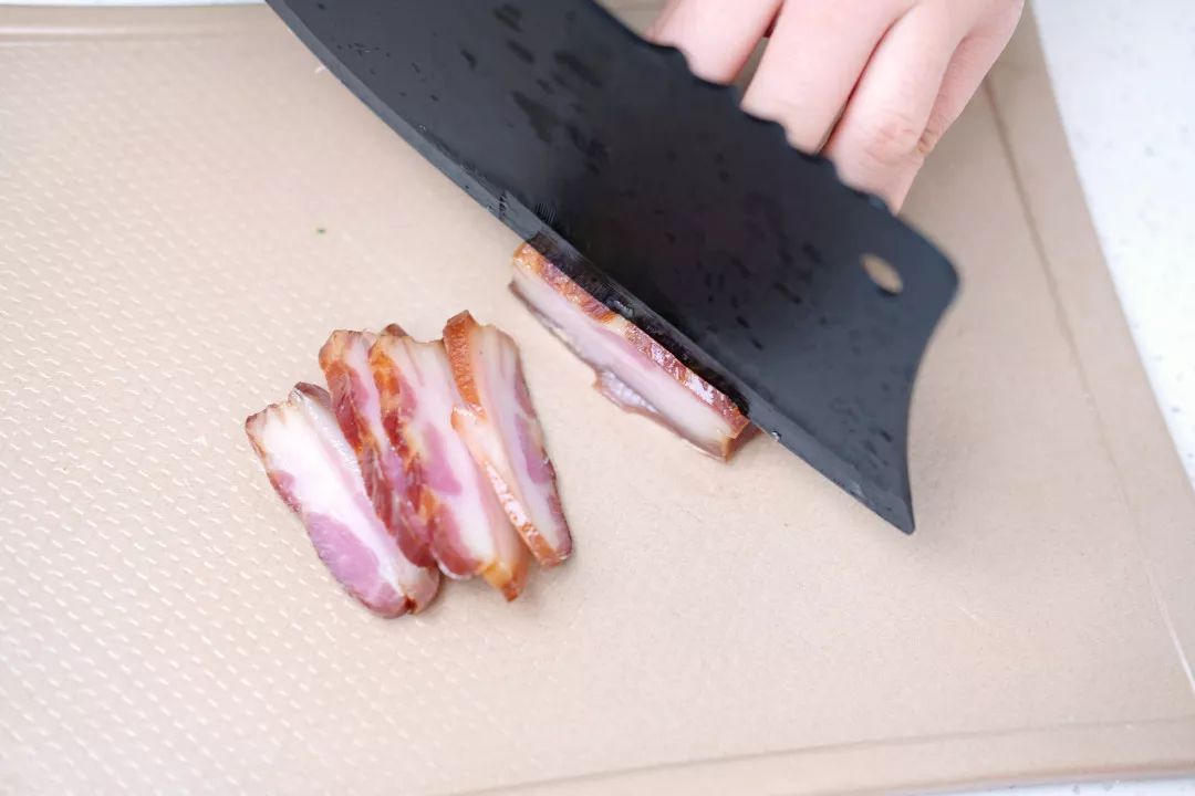 萝卜切薄片;腊肉洗净后也直接切薄片。