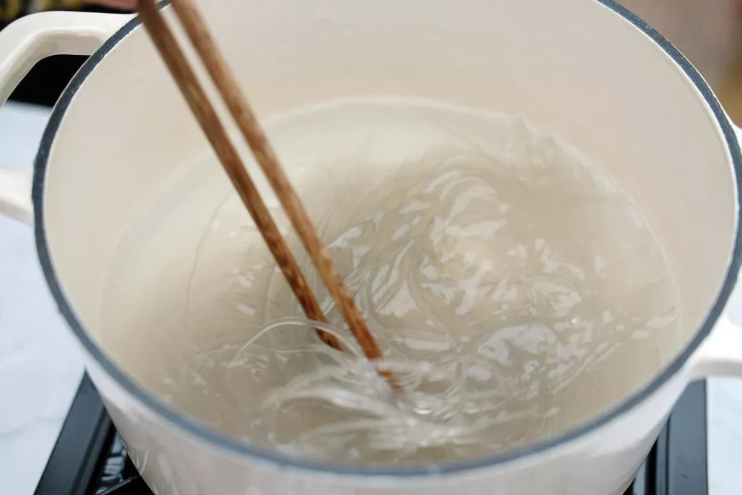 -1-食材准备:水烧开后下入面条,稍加煮制就捞出备用。