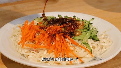 8、完成:加入胡萝卜丝和黄瓜丝,浇入炸制好的葱油和油泼辣子,拌匀即可开吃啦~
