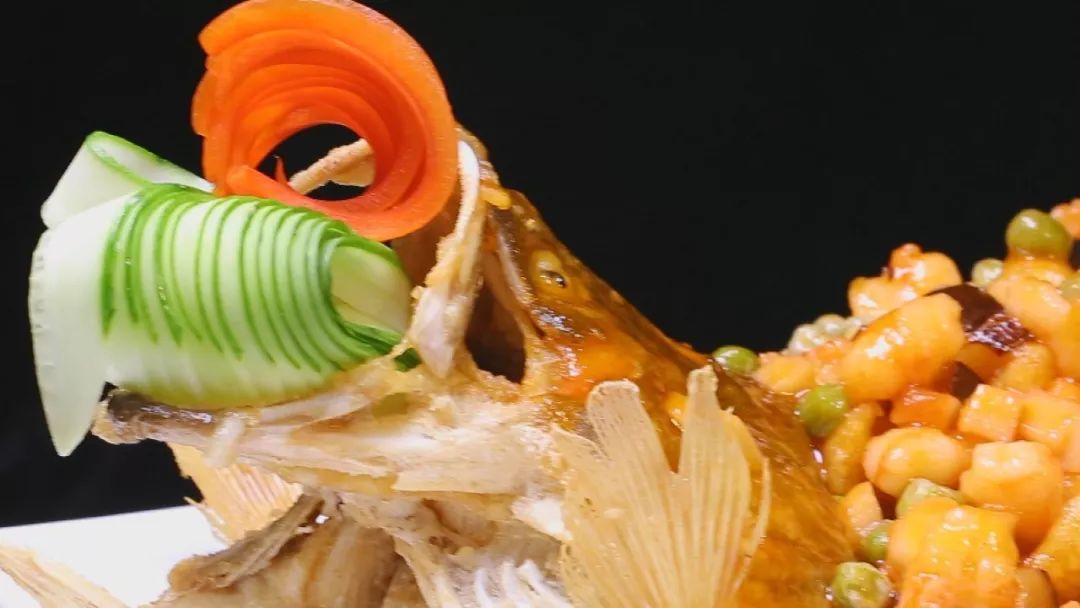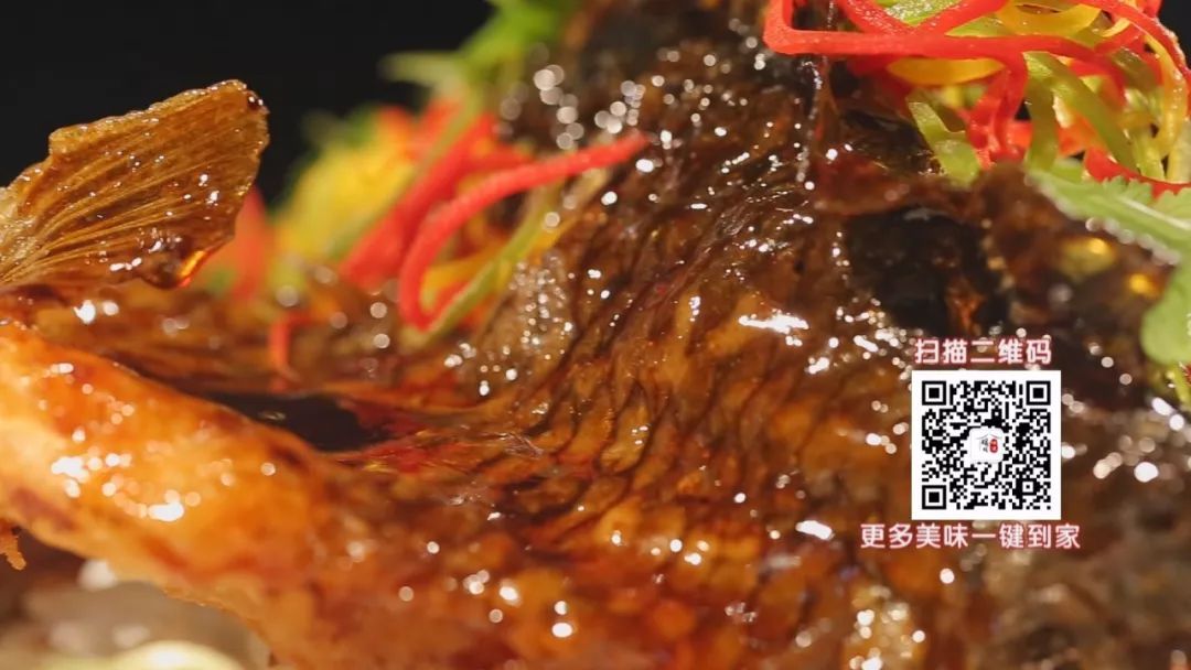 罾(音zeng)蹦鲤鱼是一道传统名肴,属于天津菜,因其成菜后鱼形如同在罾网中挣扎蹦跃,故名。特点是鳞骨酥脆,肉质鲜嫩,大酸大甜。尤其是上桌后趁热浇以滚烫的卤汁时,热气蒸腾,香味四溢,热鱼吸热汁,吱吱声不绝,视觉、听觉、嗅觉、味觉俱佳,格外增添食趣。